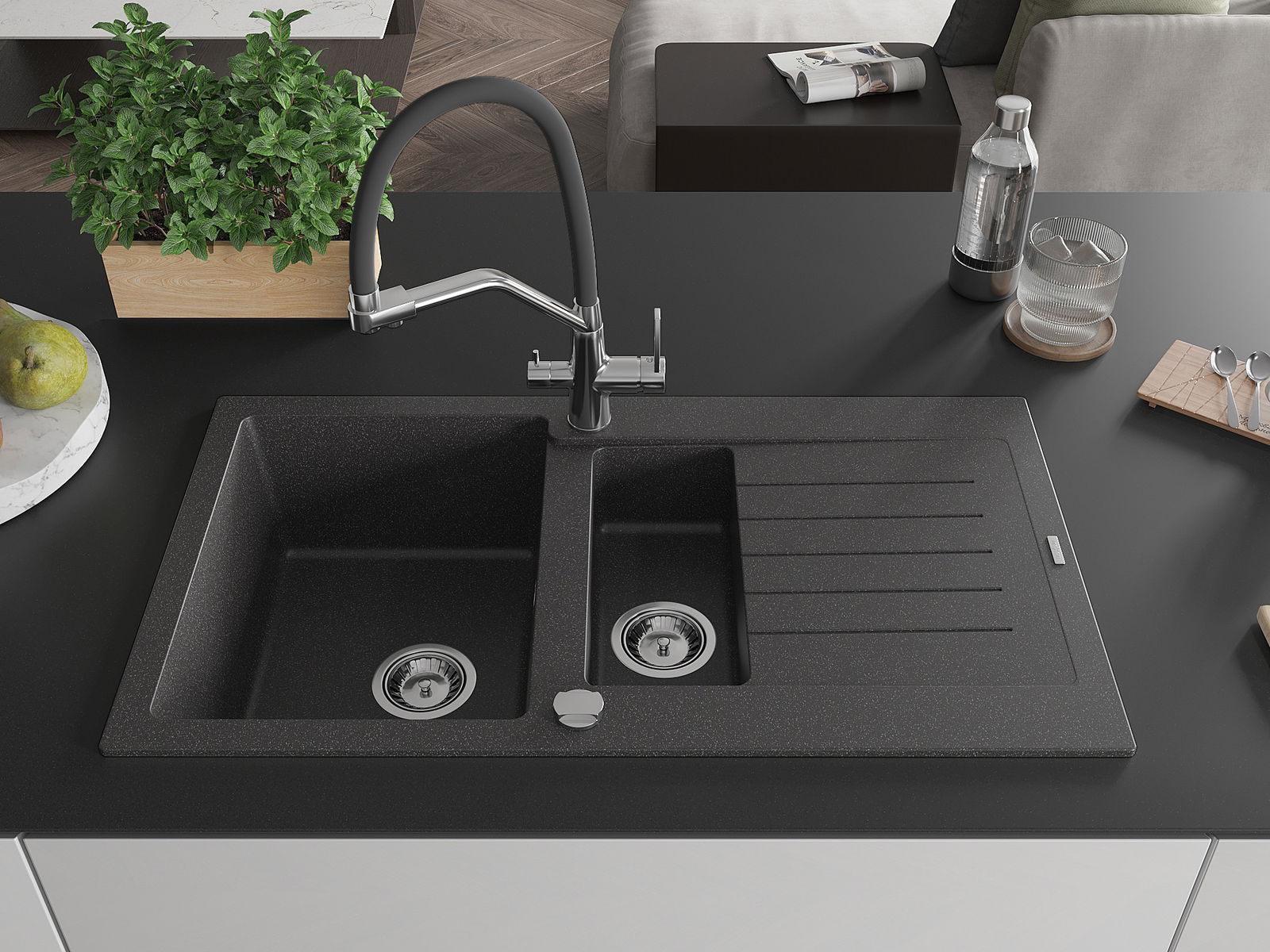 Мивката е направена от висококачествен гранит. Това е елегантно и най -вече практично допълнение към всяка кухня, независимо от нейния стил. Висококачествената и гранитна издръжливост осигуряват много години употреба.