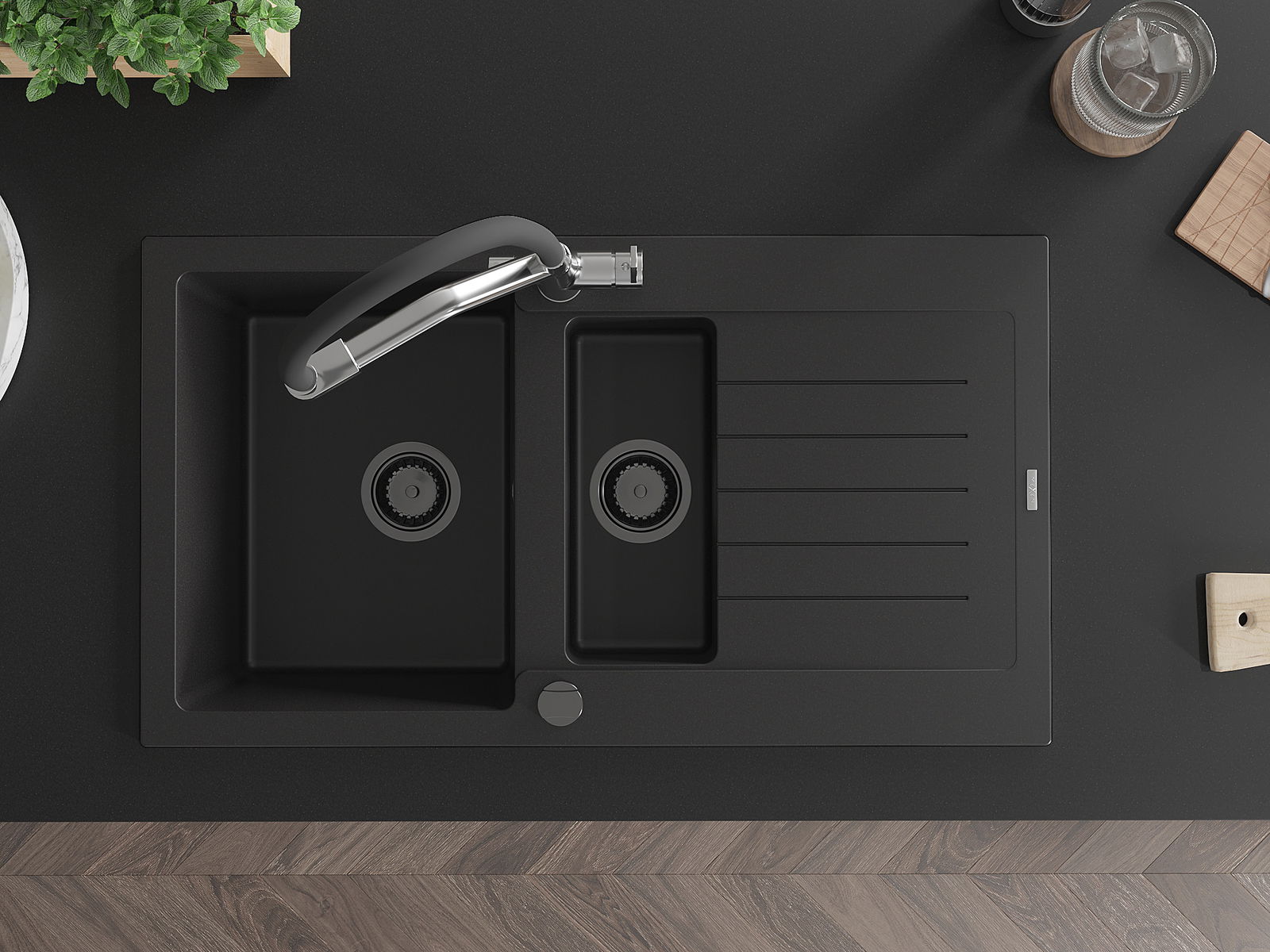 Мивката е направена от висококачествен гранит. Това е елегантно и най -вече практично допълнение към всяка кухня, независимо от нейния стил. Висококачествената и гранитна издръжливост осигуряват много години употреба.