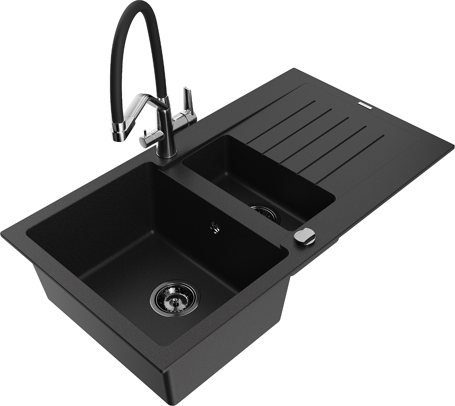 Mexen Matias гранитна мивка с 1,5 камери и отцедник и кухненски смесител Duo, черен - 6502-77-671701-07-B