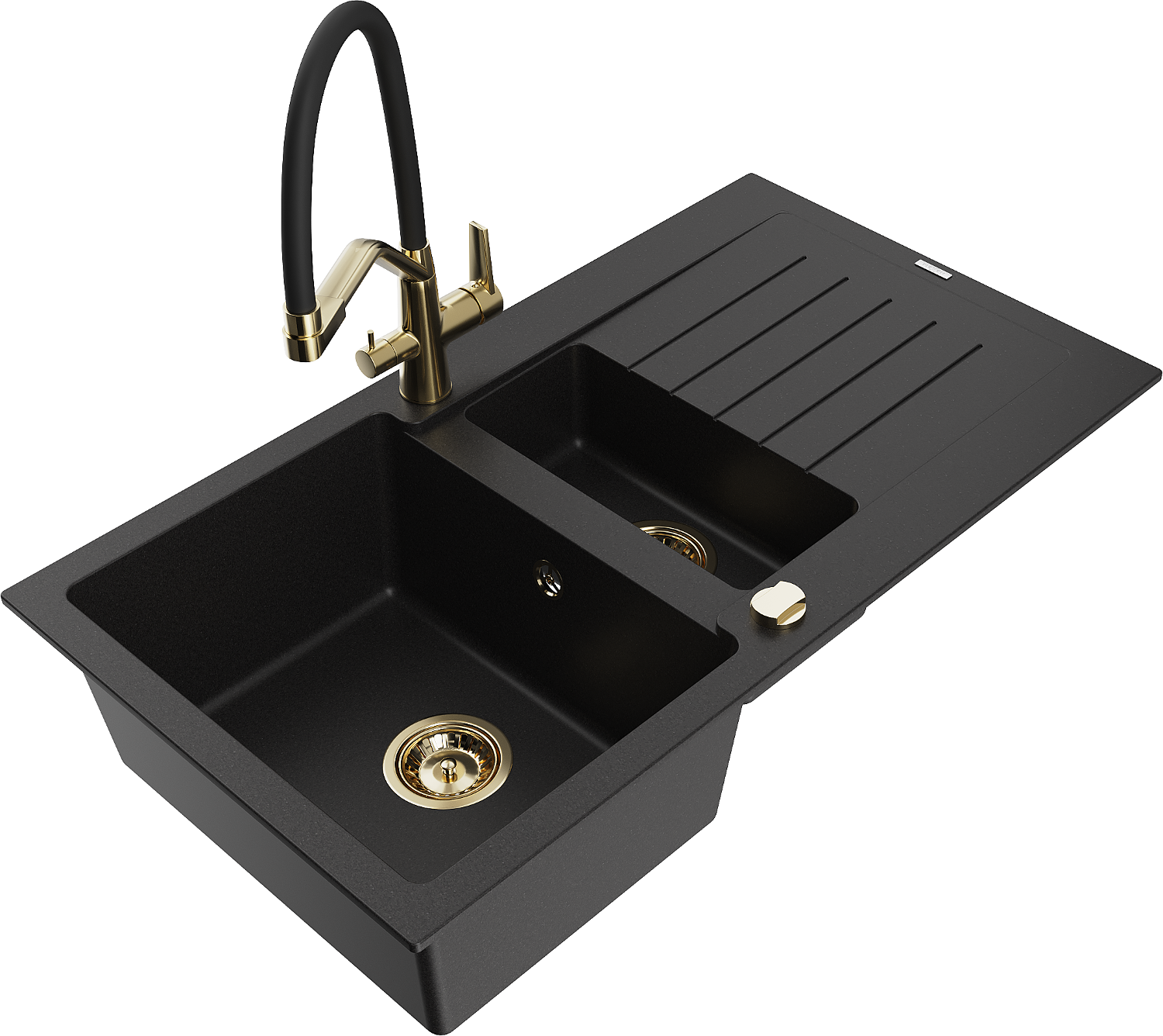 Mexen Matias гранитна мивка с 1,5 камери с отцедник и кухненски смесител Duo, черен - 6502-77-671701-57-G