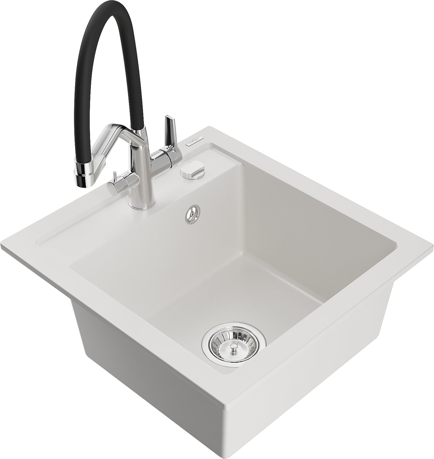 Mexen Vito кухненска мивка от гранит с една камера и кухненски смесител Duo, бял - 6503-20-671701-07