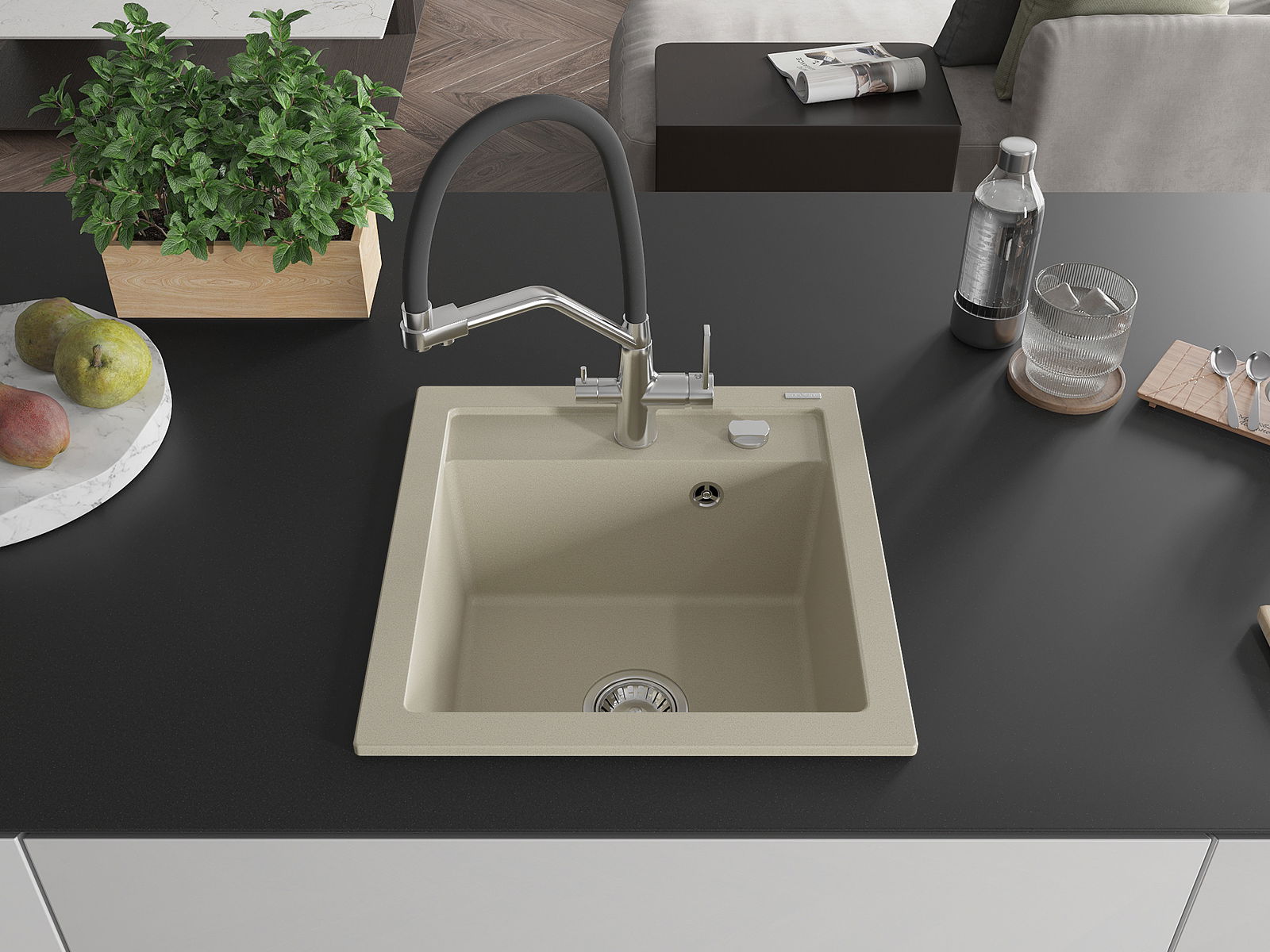 Мивката е направена от висококачествен гранит. Това е елегантно и най -вече практично допълнение към всяка кухня, независимо от нейния стил. Висококачествената и гранитна издръжливост осигуряват много години употреба.