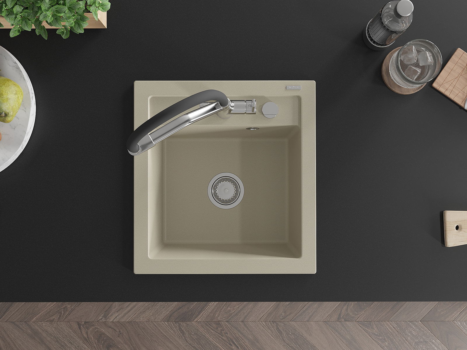 Mexen Vito мивка от гранит 1-камерна с кухненски смесител Duo, бежов - 6503-69-671701-07