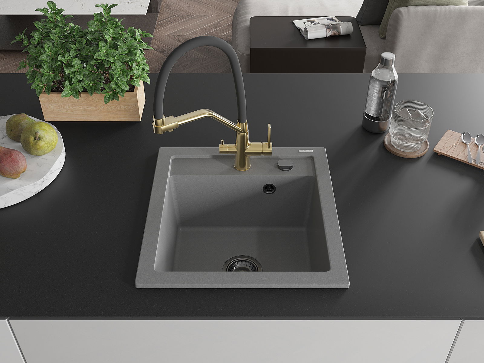Мивката е направена от висококачествен гранит. Това е елегантно и най -вече практично допълнение към всяка кухня, независимо от нейния стил. Висококачествената и гранитна издръжливост осигуряват много години употреба.