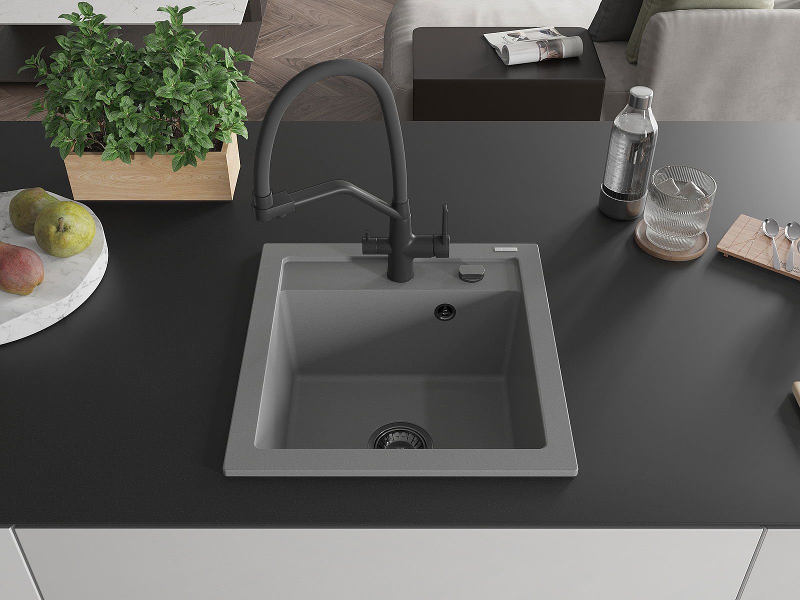 Мивката е направена от висококачествен гранит. Това е елегантно и най -вече практично допълнение към всяка кухня, независимо от нейния стил. Висококачествената и гранитна издръжливост осигуряват много години употреба.