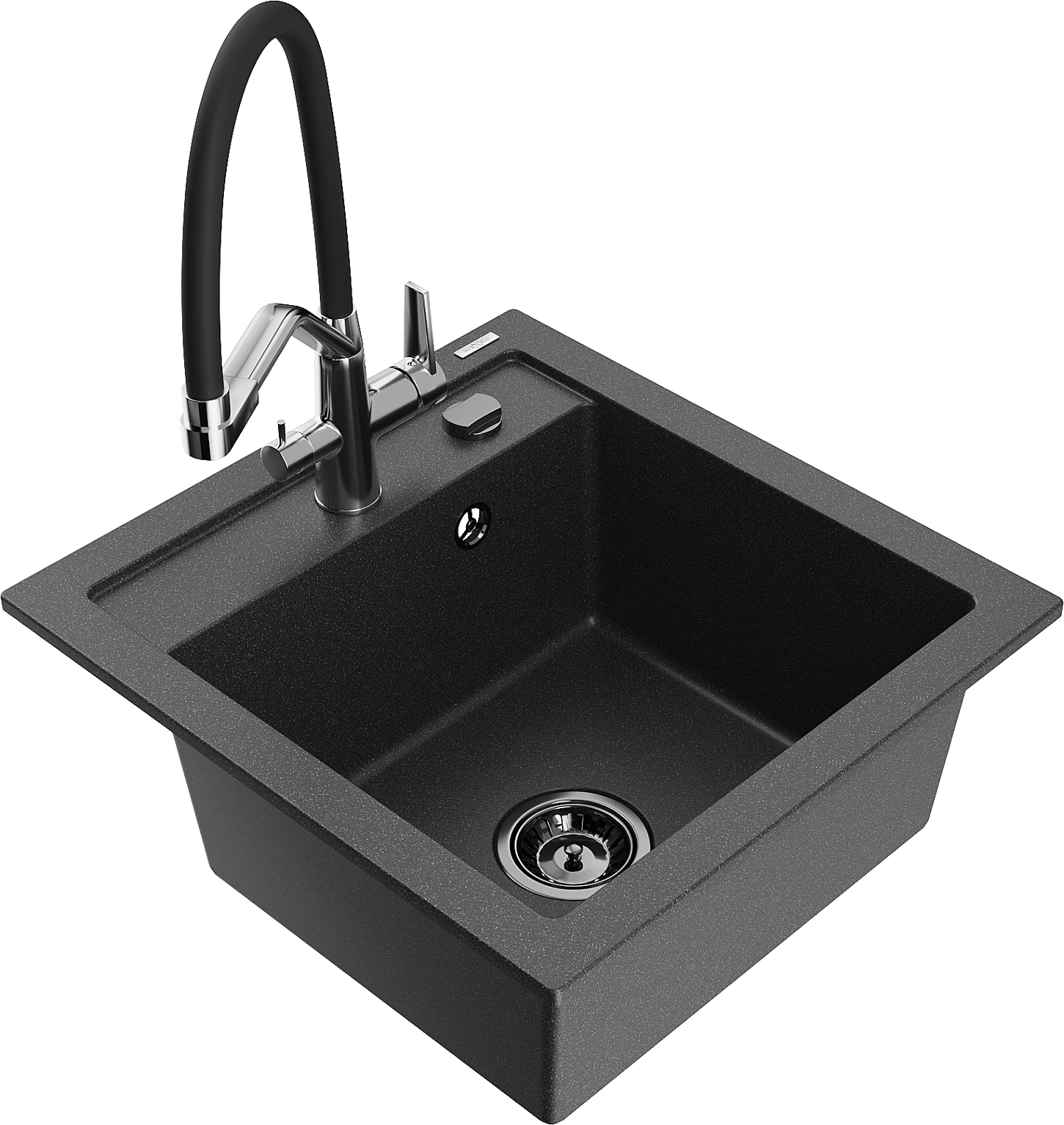 Mexen Vito гранитна кухненска мивка с 1 отделение и кухненски смесител Duo, черен с пръски - 6503-76-671701-07-B