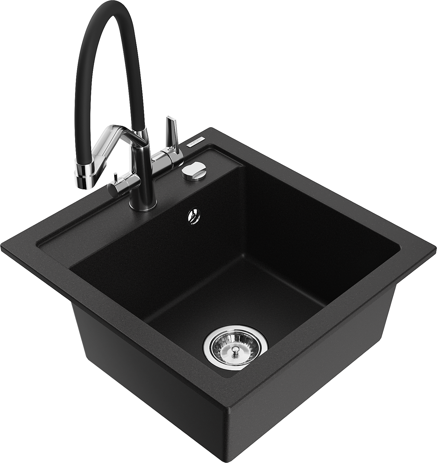 Mexen Vito мивка от гранит 1-коморова с кухненски смесител Duo, черен - 6503-77-671701-07