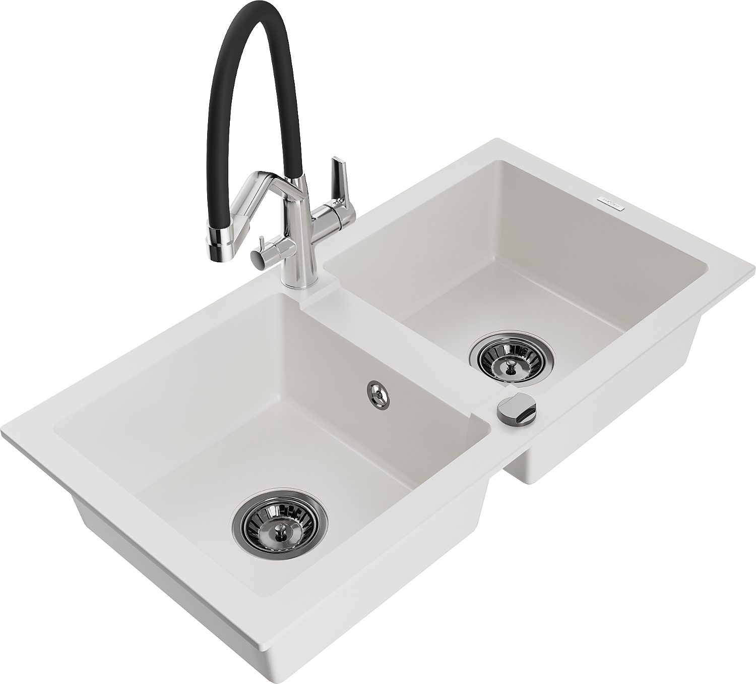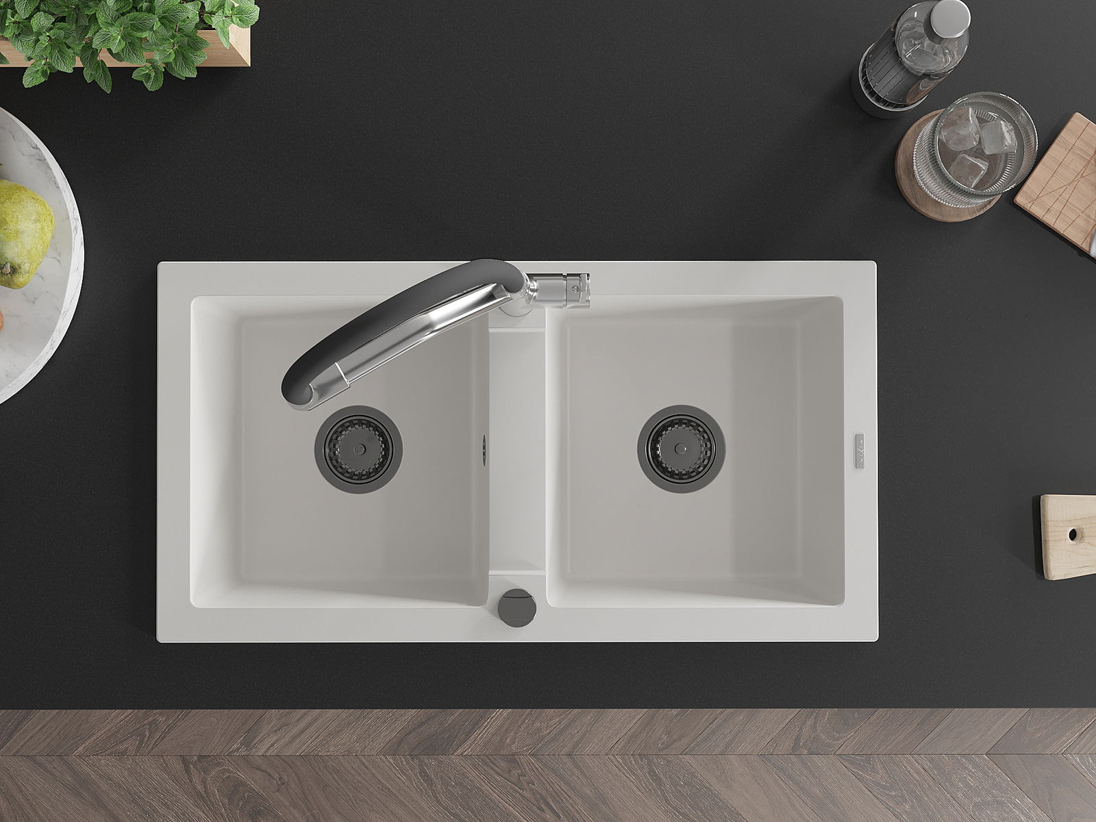 Mexen Mario двоен кухненски мивка от гранит с кухненски смесител Duo, бял - 6504-20-671701-07-B