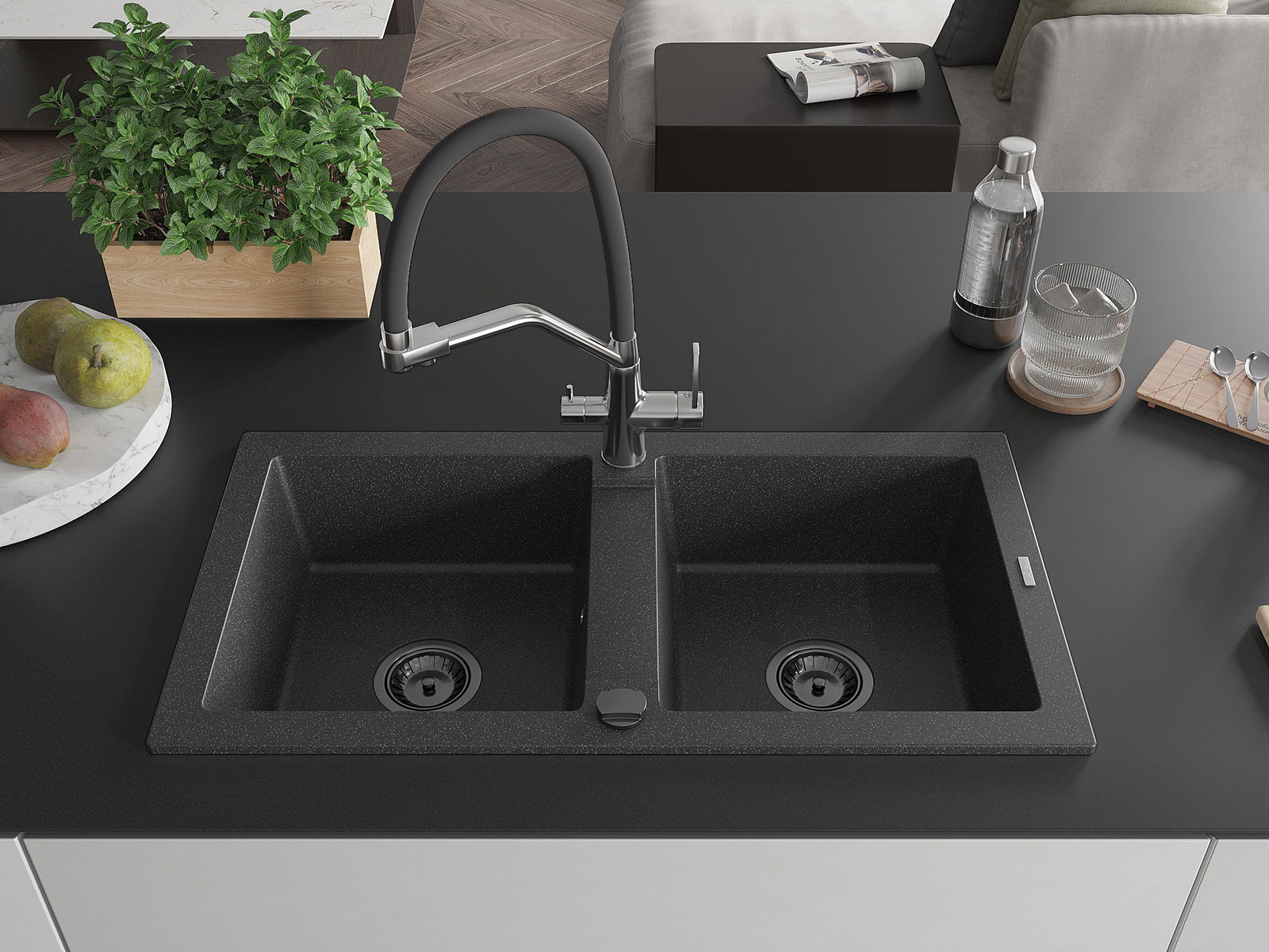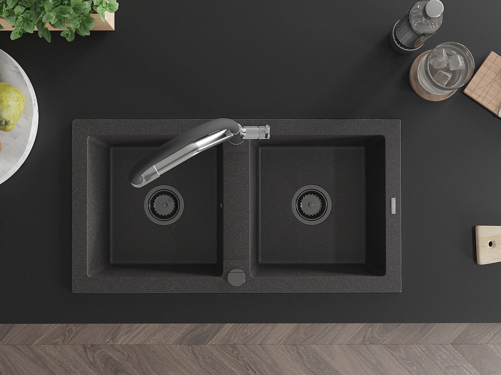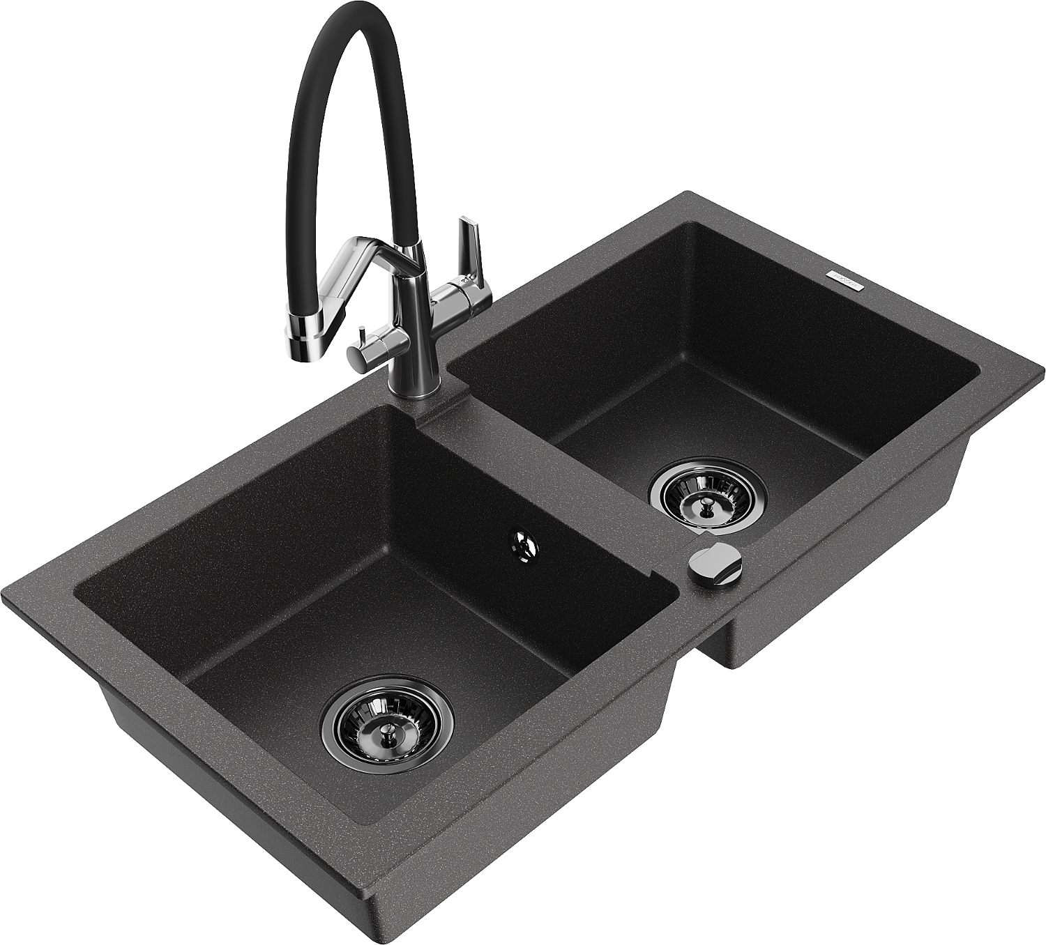 Мексен Марио двукоморна гранитна мивка с кухненски смесител Duo, черен на точки - 6504-76-671701-07-B
