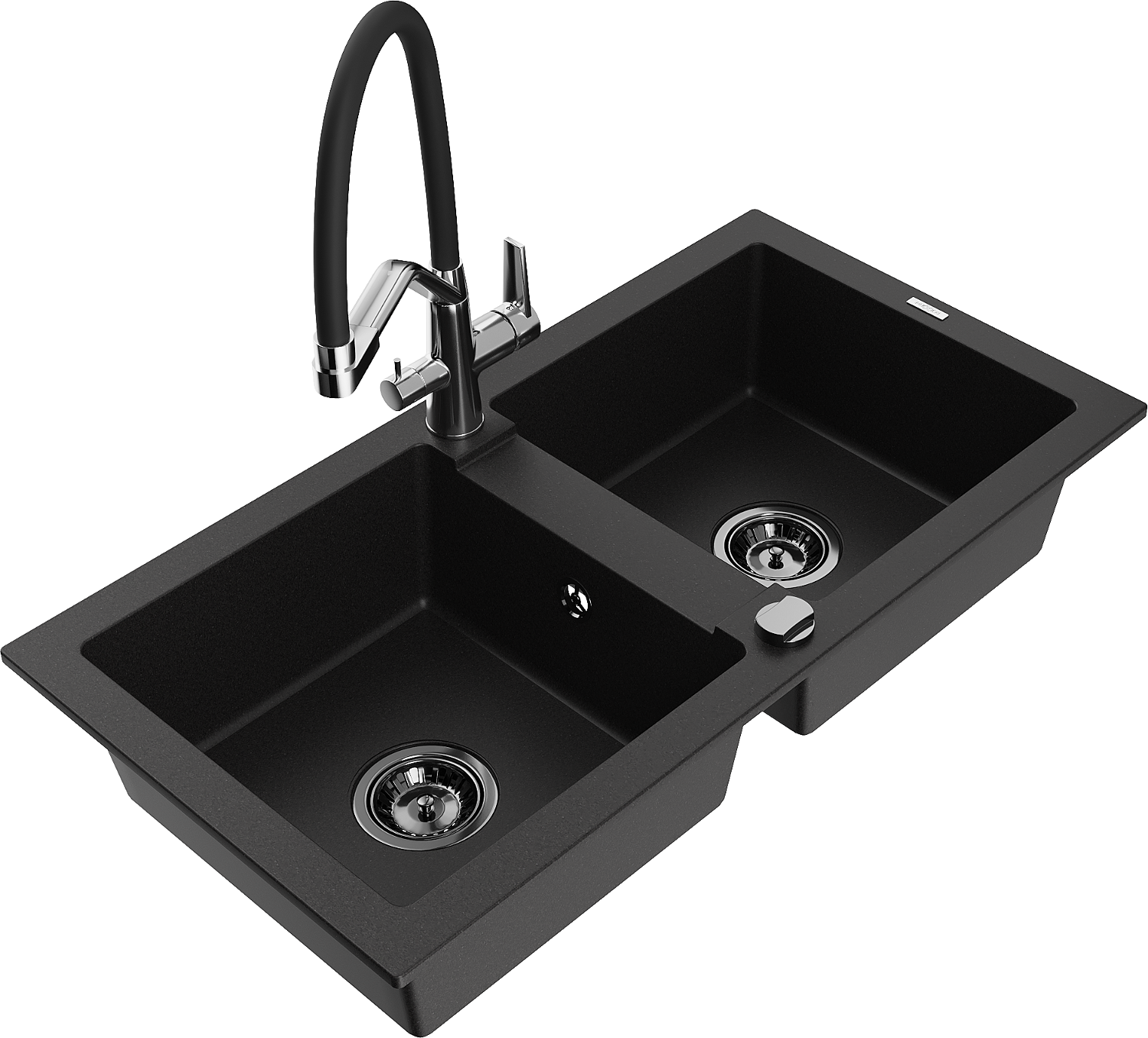 Mexen Mario двоен кухненски мивка от гранит с кухненски смесител Duo, черен - 6504-77-671701-07-B