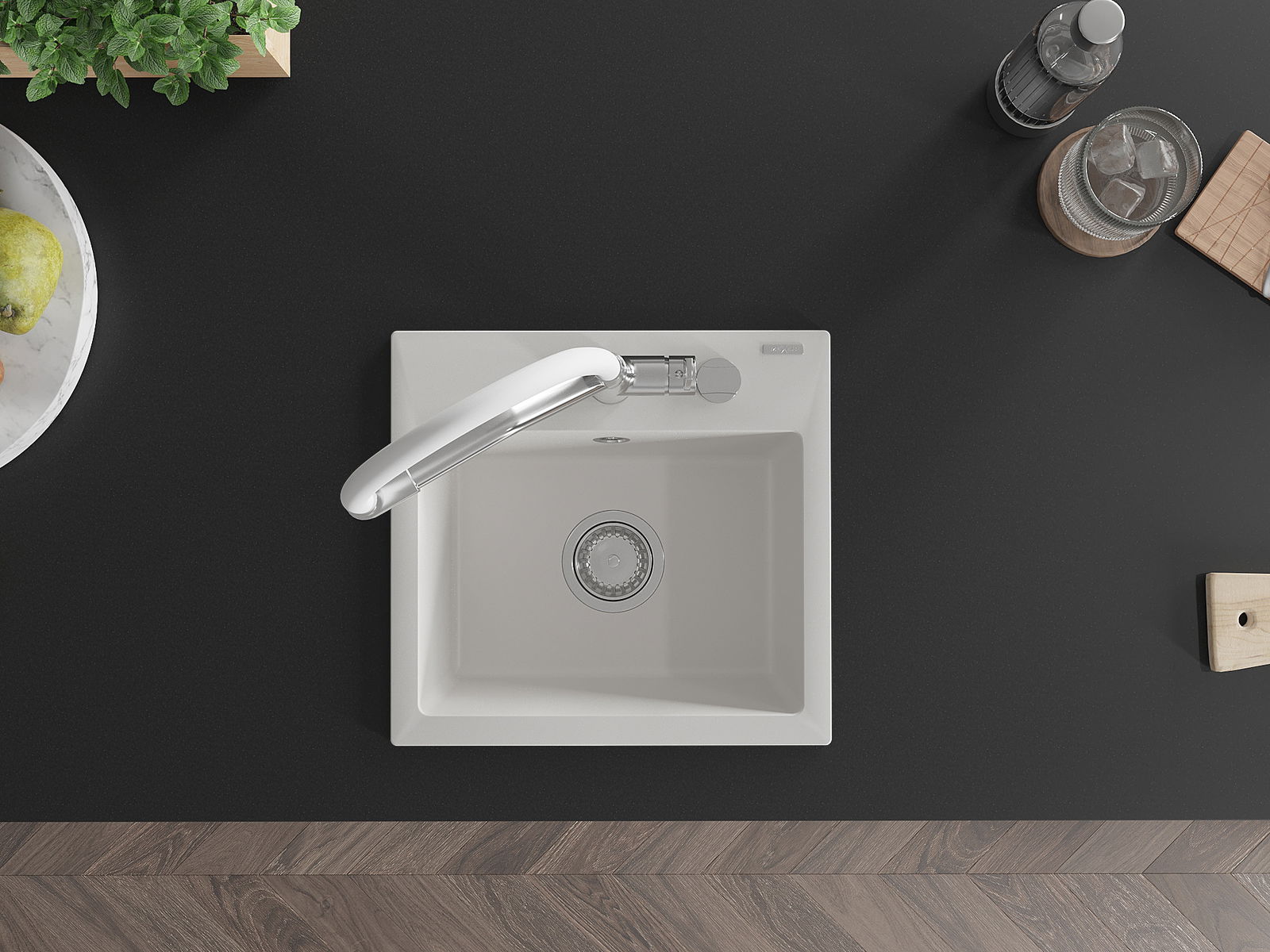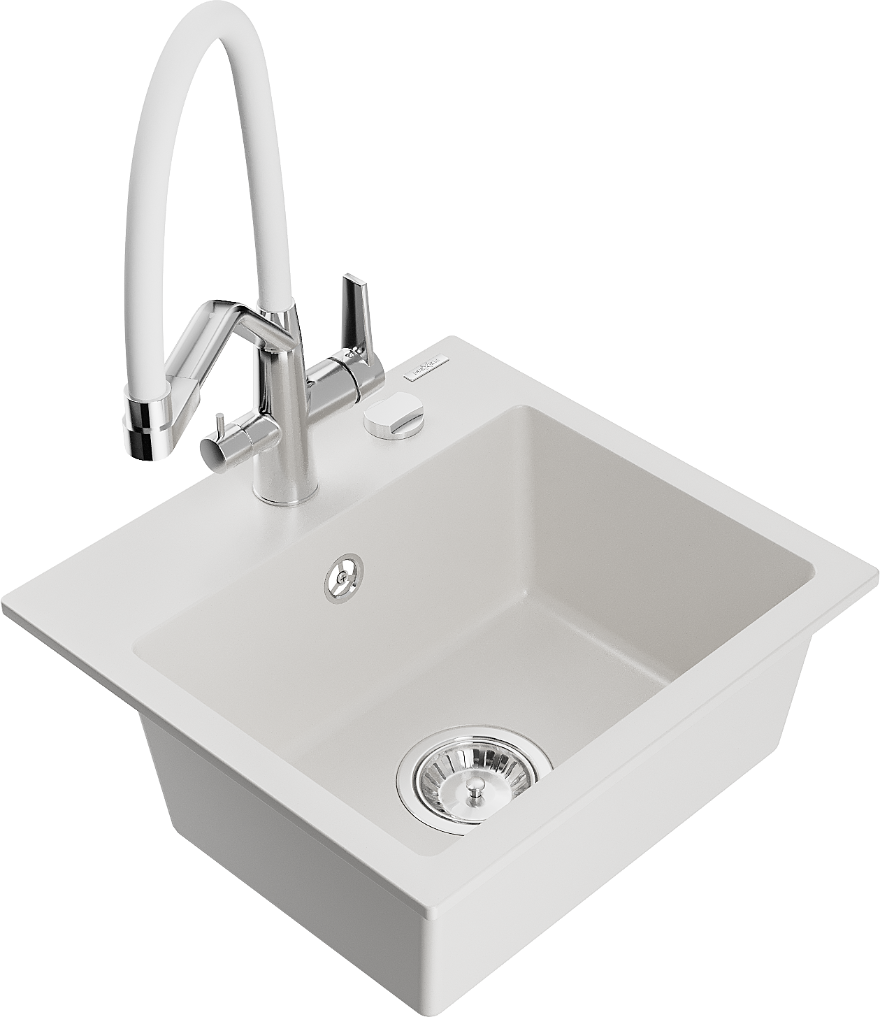 Mexen Milo гранитна кухненска мивка с една камера и кухненски смесител Duo, бяла - 6505-20-671701-02