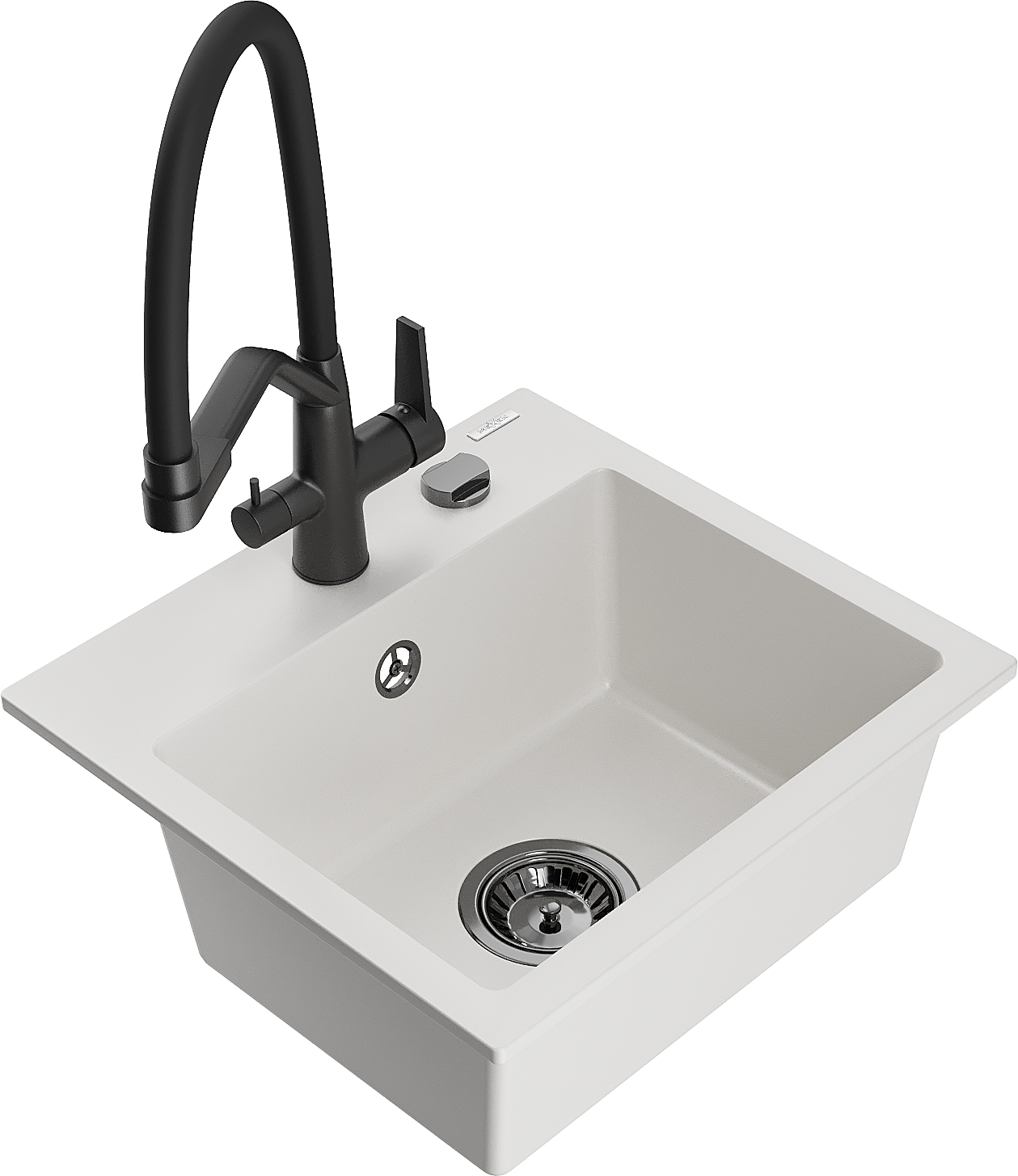 Mexen Milo гранитна мивка с 1 камера и кухненски смесител Duo, бял - 6505-20-671701-70-B