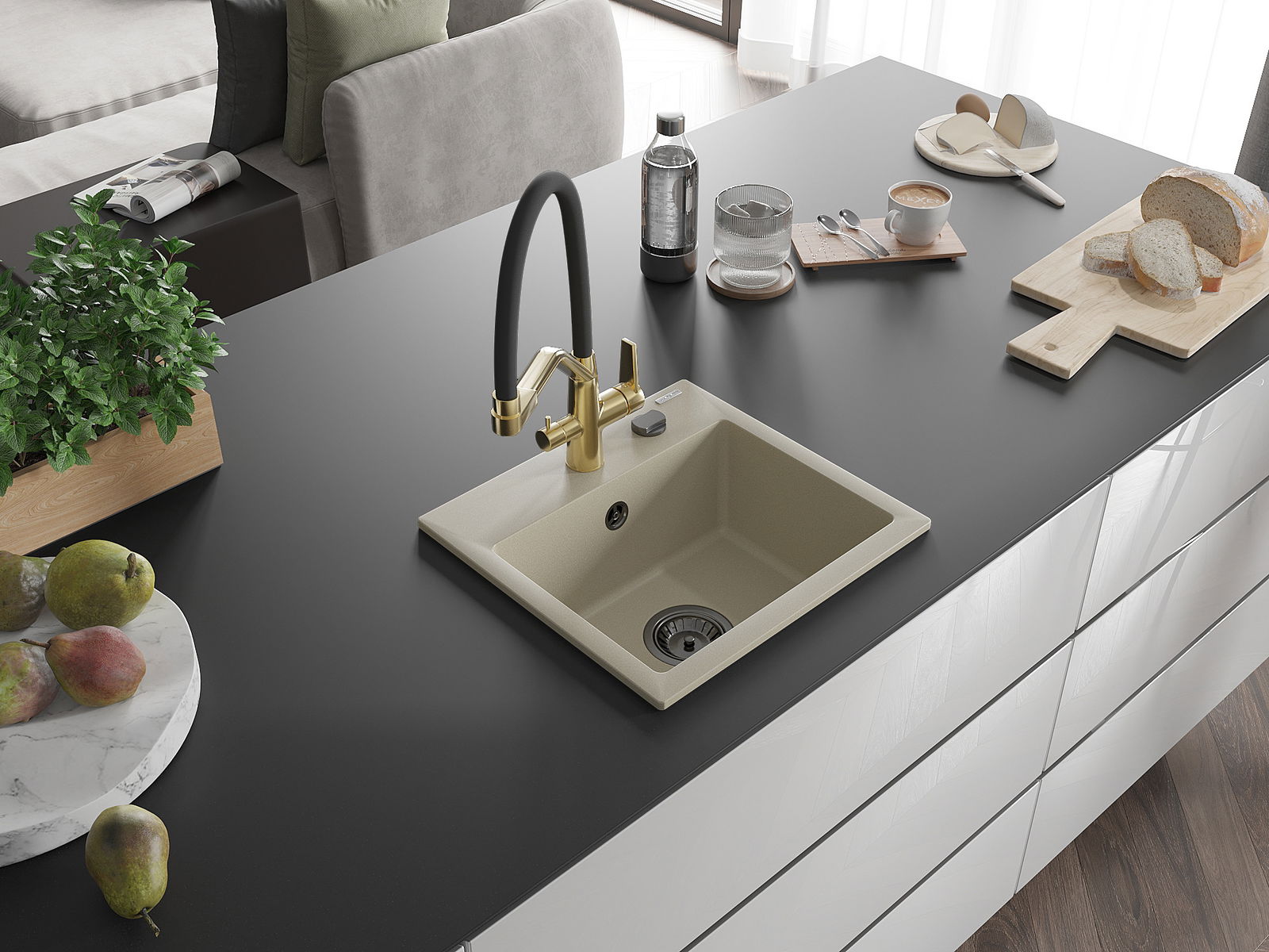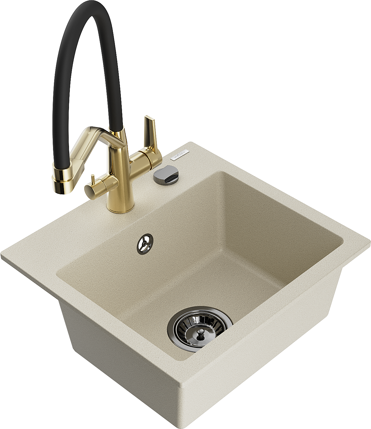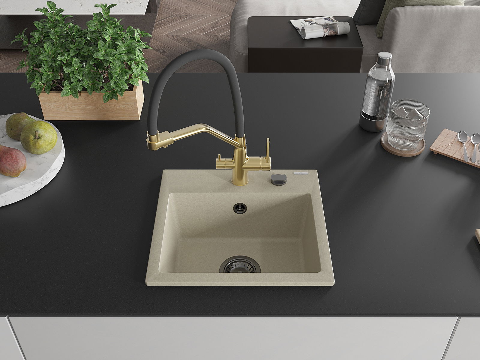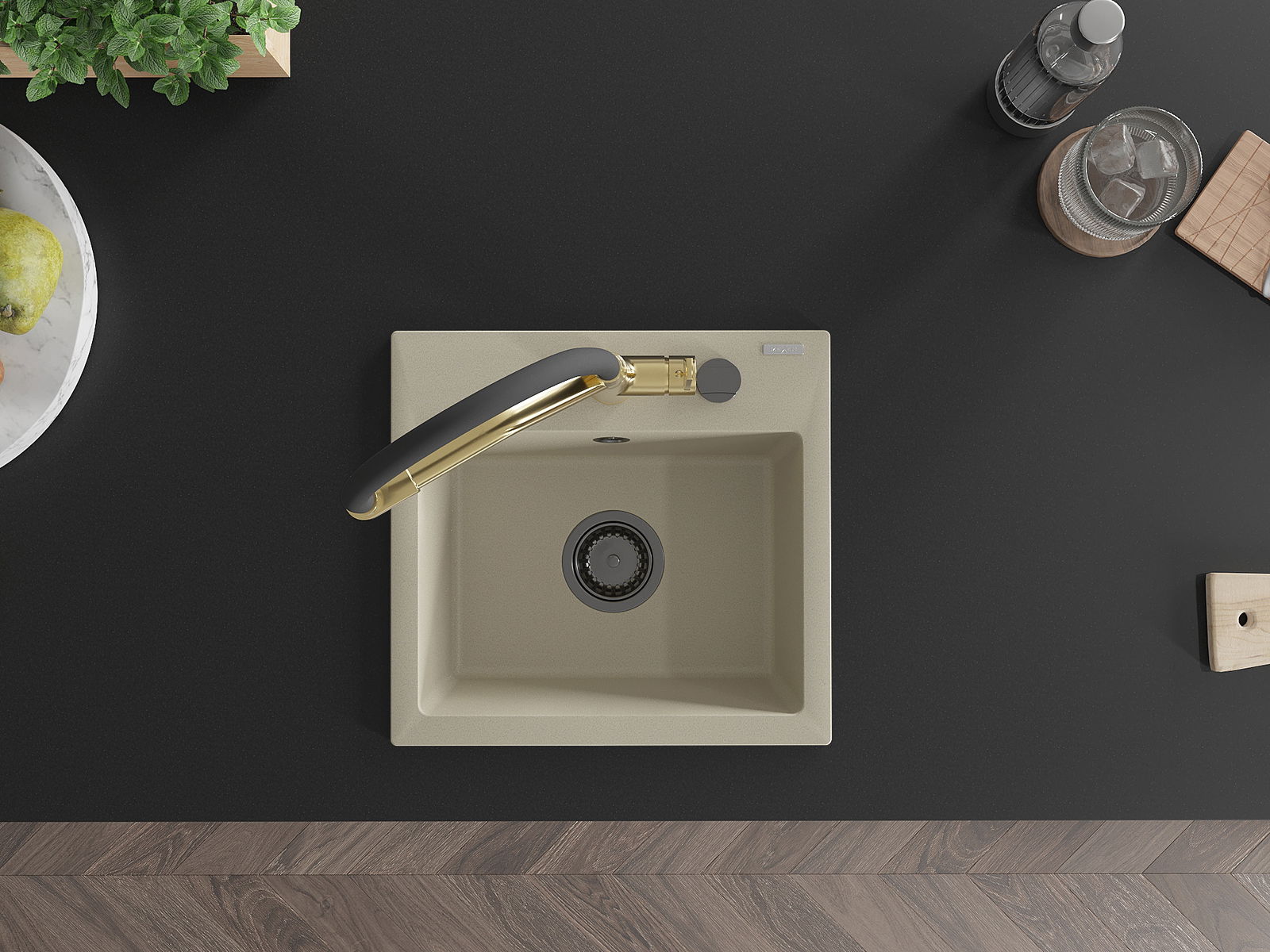 Mexen Milo кухненска мивка от гранит с 1 отделение и смесител Duo, бежов - 6505-69-671701-57-B