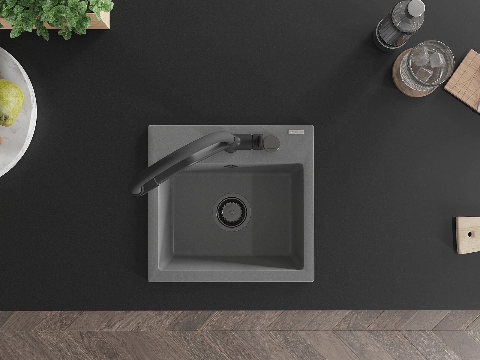 Mexen Milo гранитна кухненска мивка с 1 отделение и кухненски смесител Duo, сив - 6505-71-671701-70-B