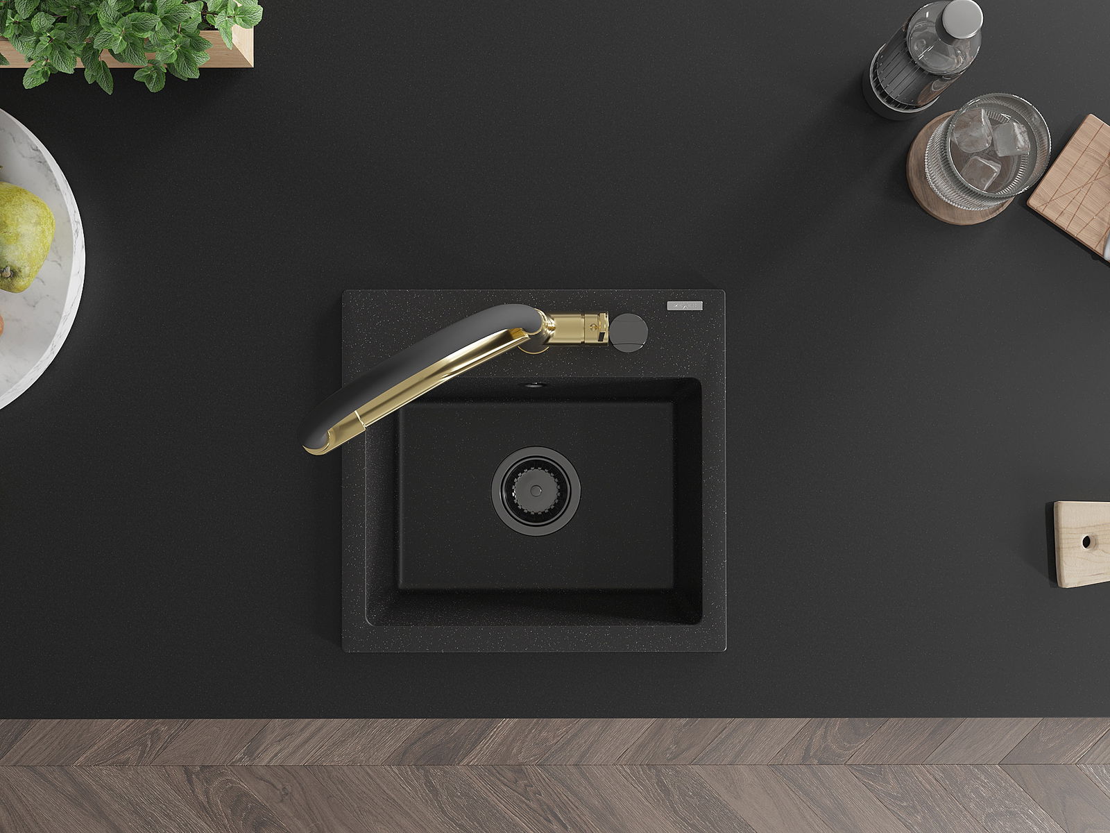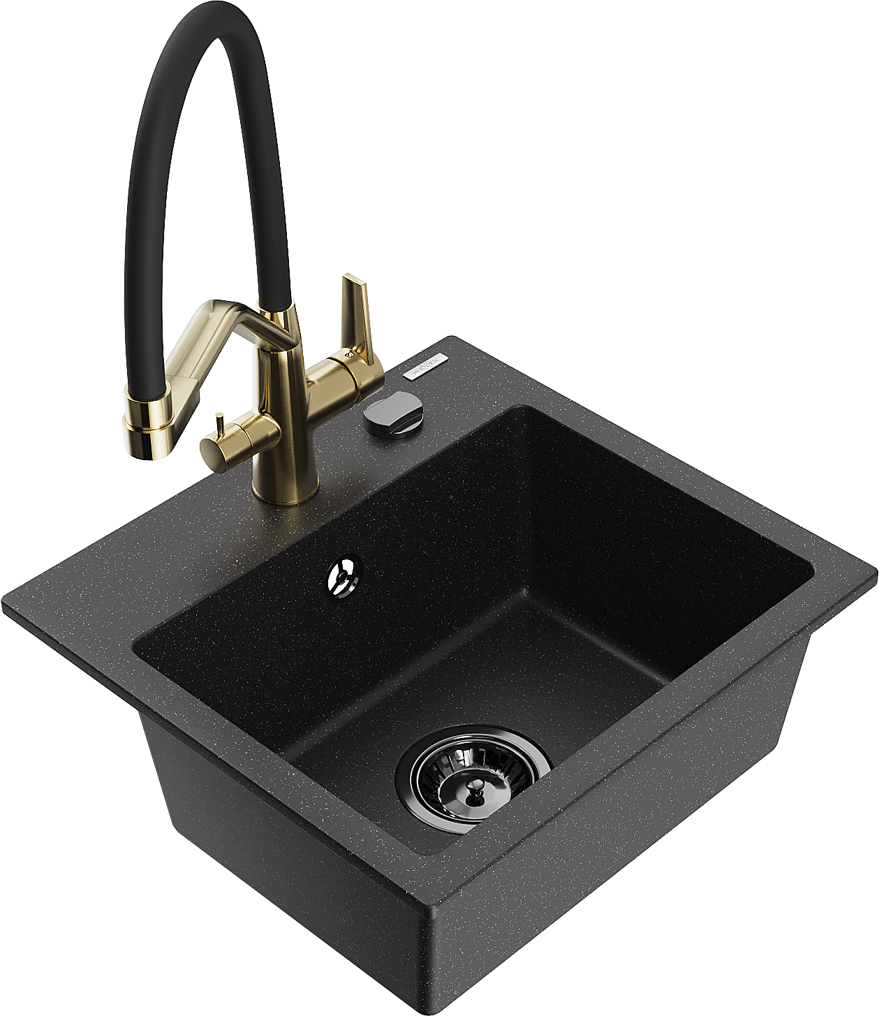 Mexen Milo мивка от гранит с 1 камера с кухненски смесител Duo, черно/сребрист металик - 6505-73-671701-57-B