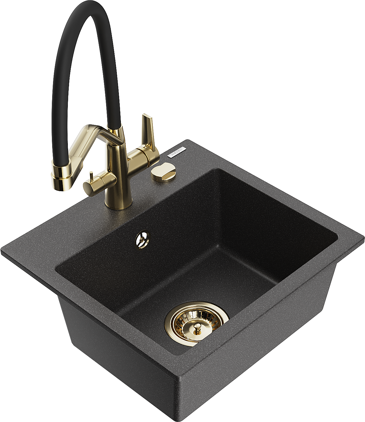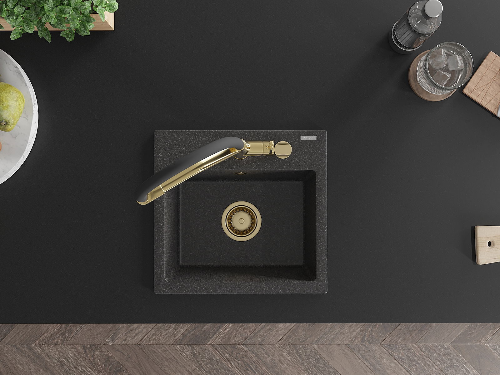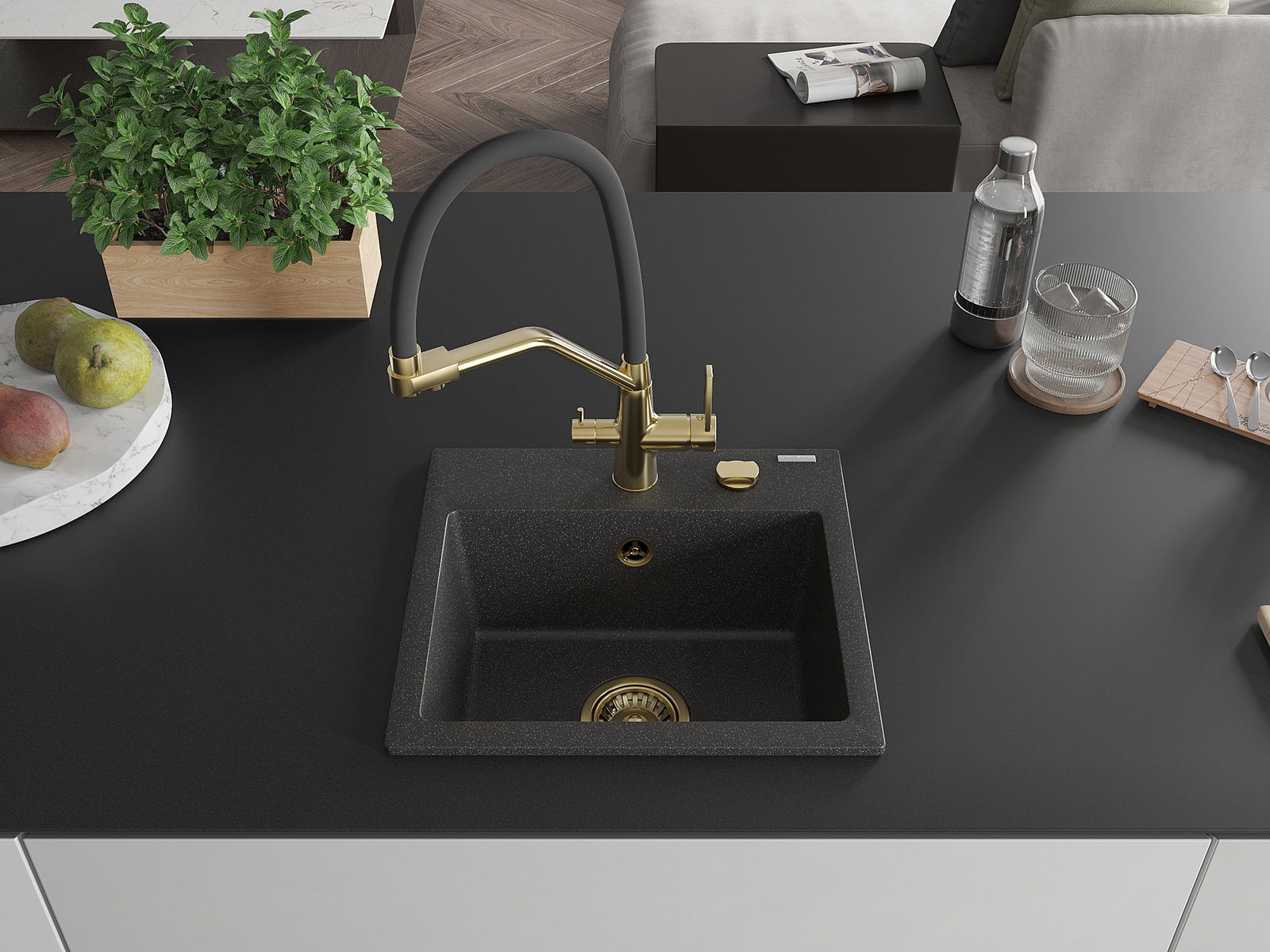 Mexen Milo гранитна кухненска мивка 1-камерна с кухненски смесител Duo, черен с пръски - 6505-76-671701-57-G