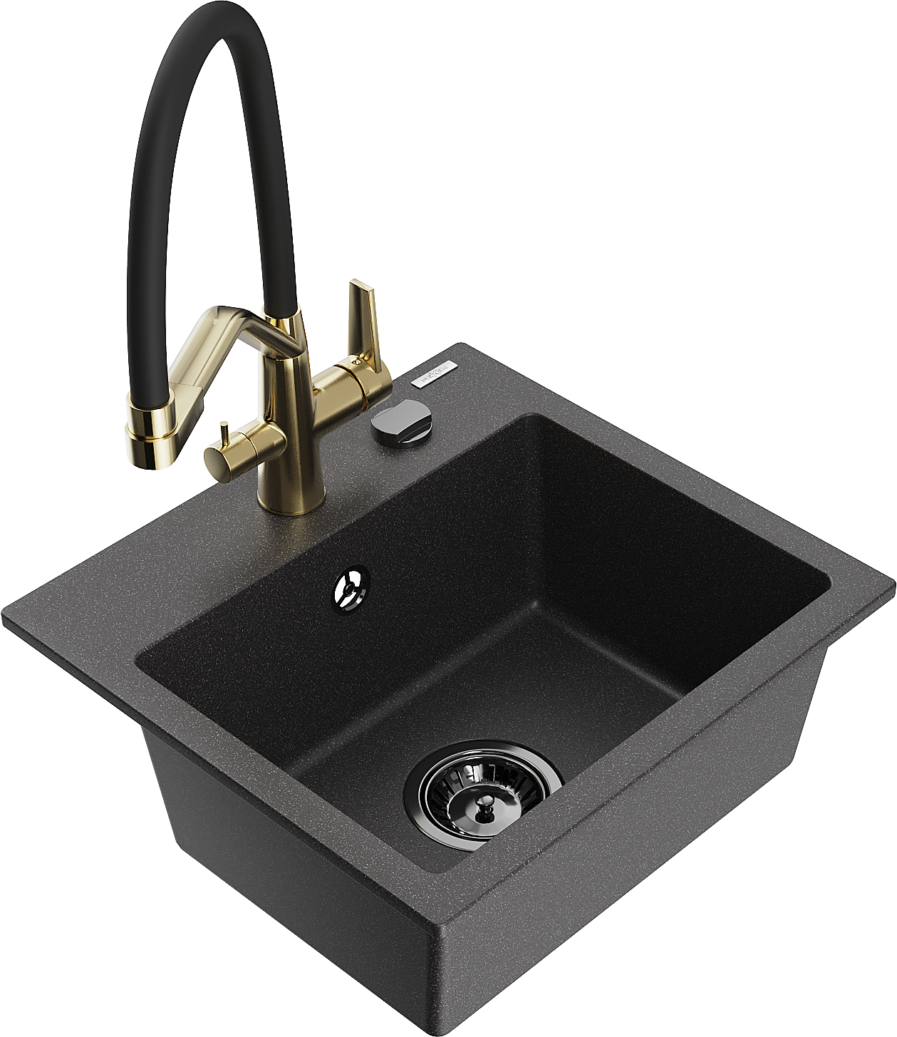 Mexen Milo гранитна кухненска мивка с 1 гнездо и кухненски смесител Duo, черен на пръски - 6505-76-671701-57-B