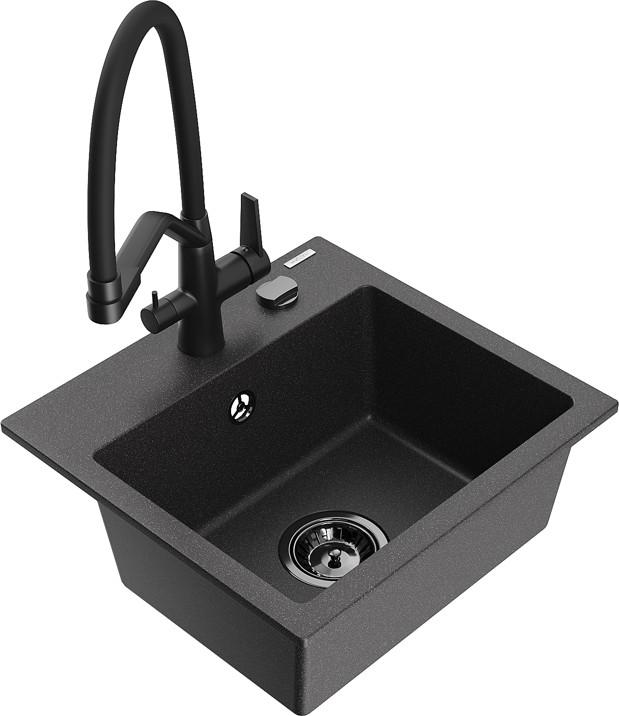 Mexen Milo мивка от гранит с една камера и кухненски смесител Duo, черно напукано - 6505-76-671701-70-B