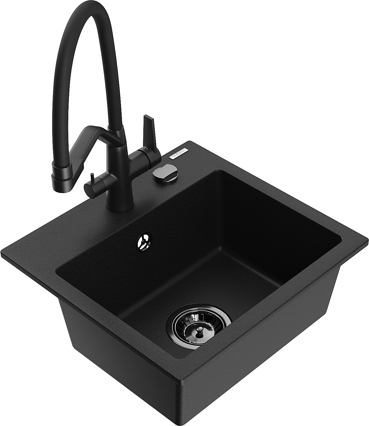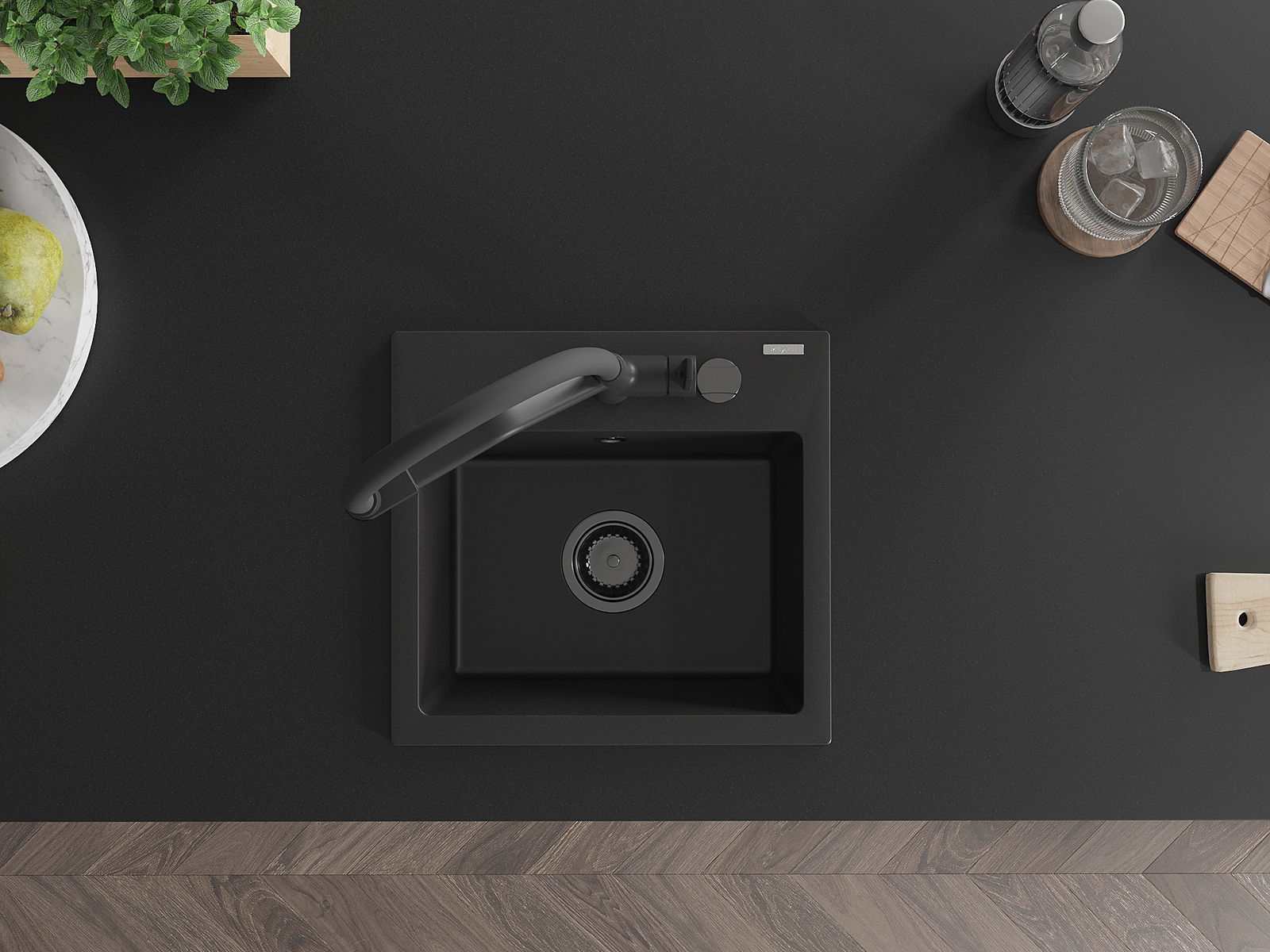 Mexen Milo кухненска мивка от гранит с 1 камера и кухненски смесител Duo, черен - 6505-77-671701-70-B