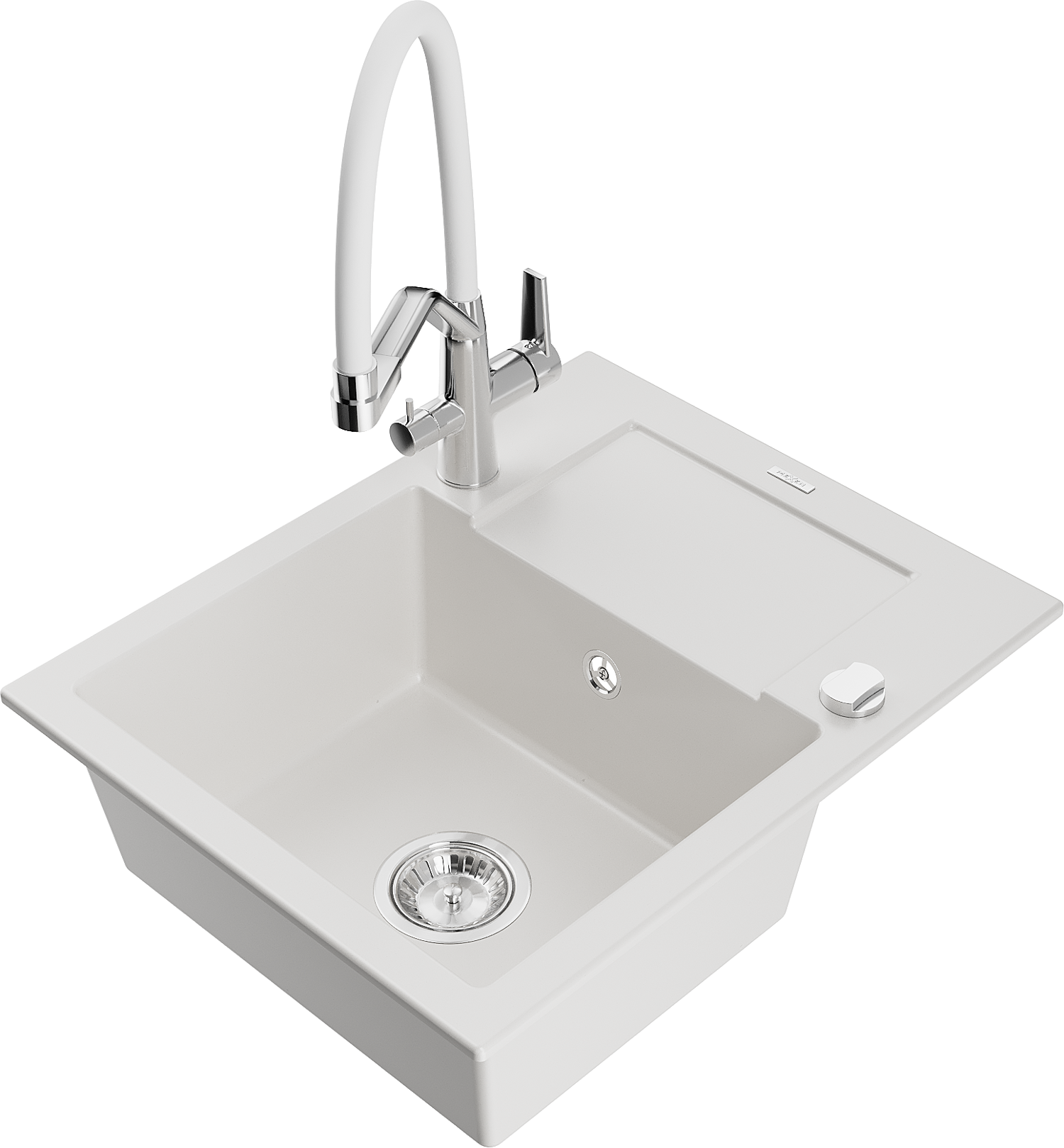 Mexen Enzo гранитна мивка с 1 корито с отцедник и кухненски смесител Duo, бял - 6506-20-671701-02