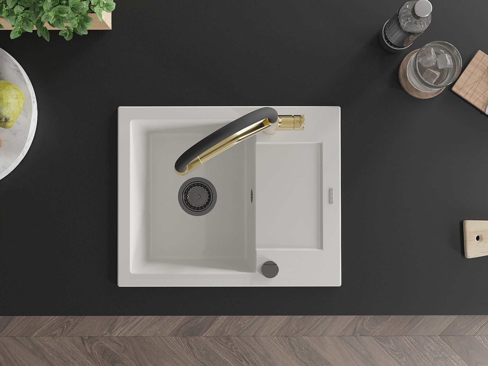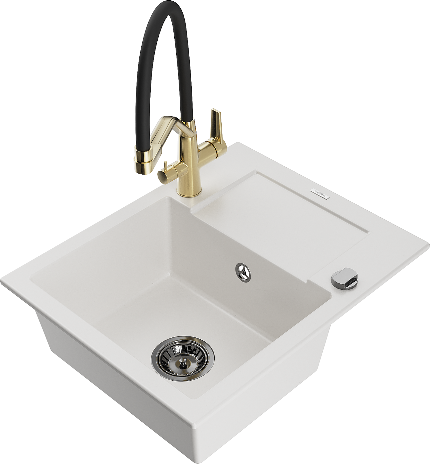 Мексэн Енцо гранитна мивка с 1 отделение с отцедник и кухненски смесител Duo, бял - 6506-20-671701-57-B