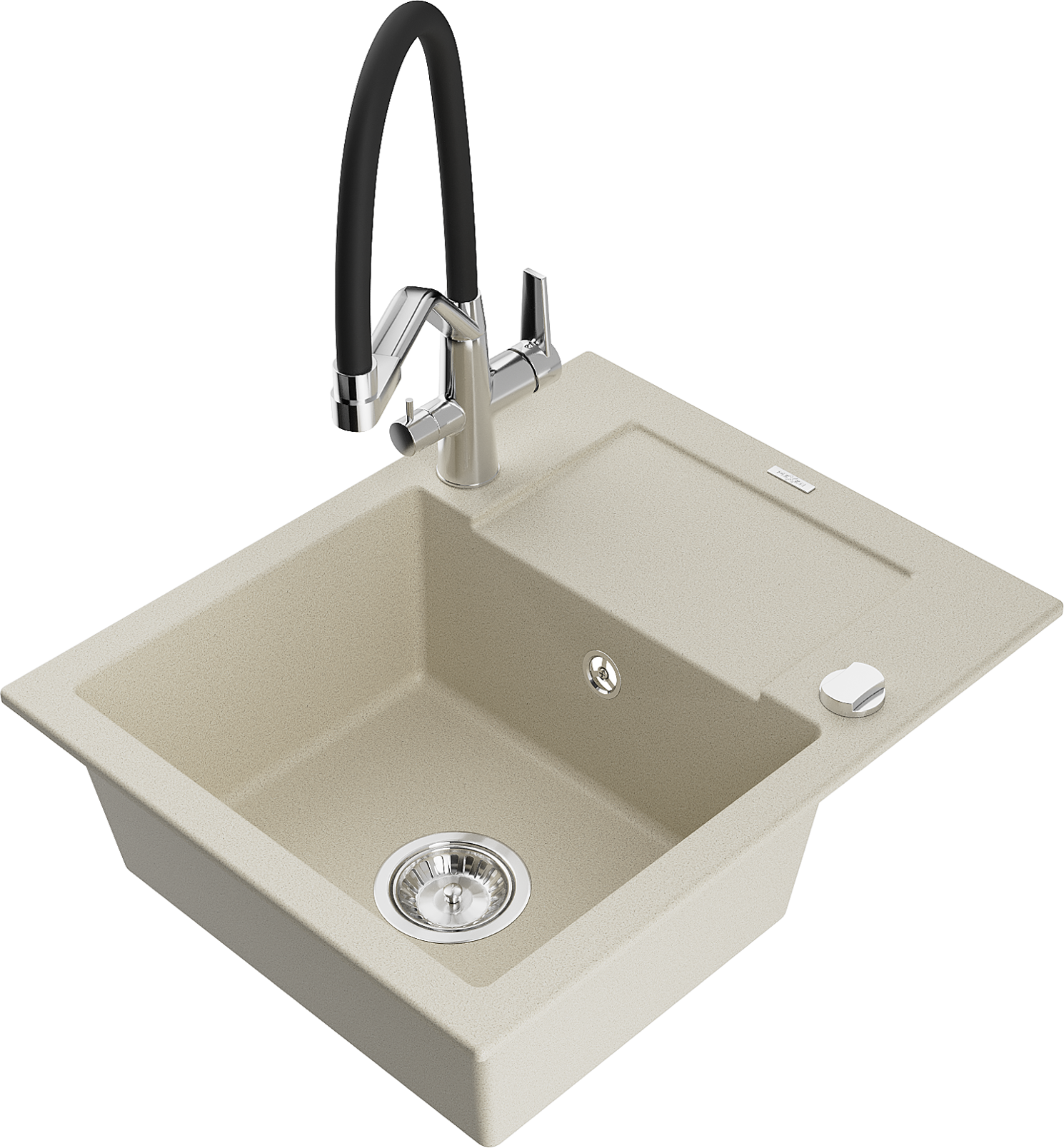 Mexen Enzo гранитна мивка с 1 камера с отцедник и кухненски смесител Duo, бежов - 6506-69-671701-07
