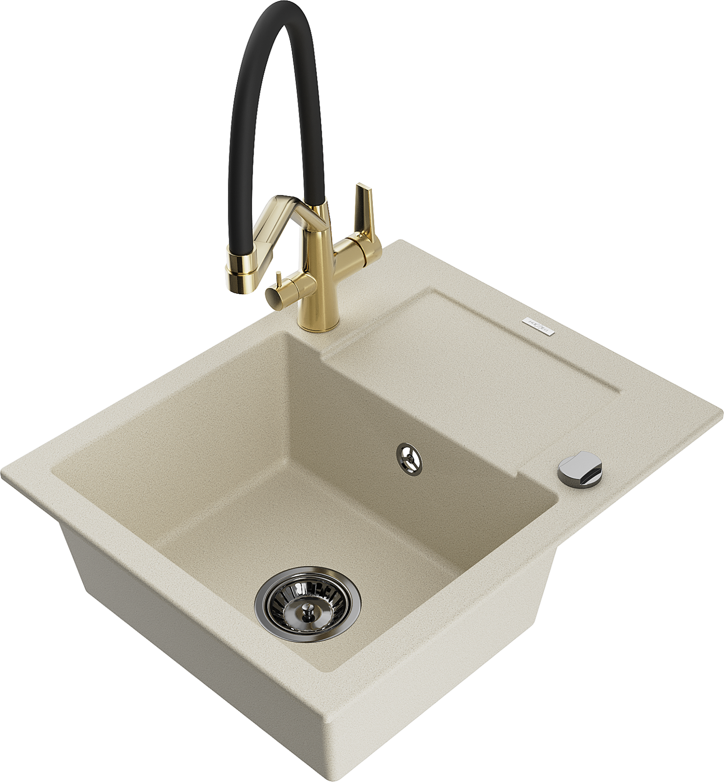 Mexen Enzo гранитна мивка с 1 корито с отцедник и кухненски смесител Duo,