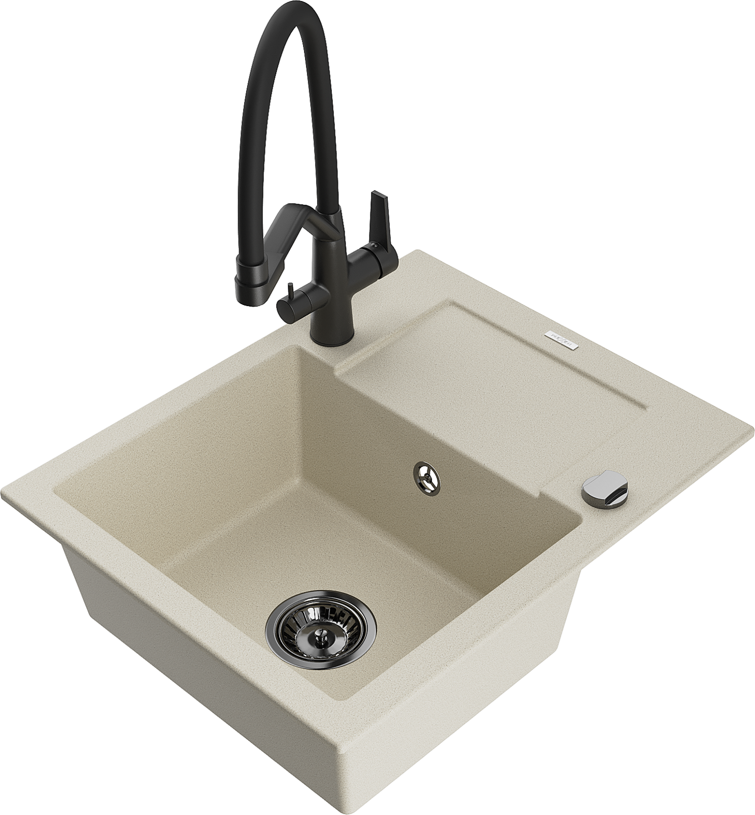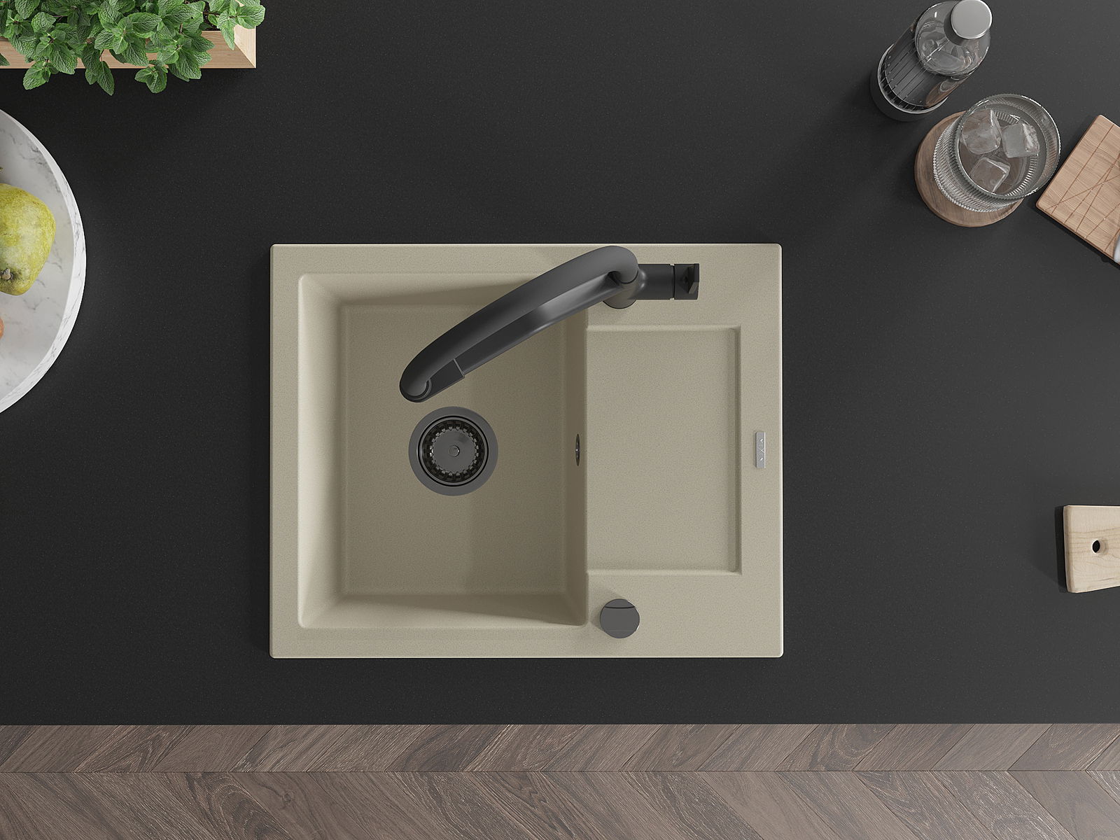 Mexen Enzo гранитна мивка с 1 отделение с оцедник и кухненски смесител Duo, бежов - 6506-69-671701-70-B