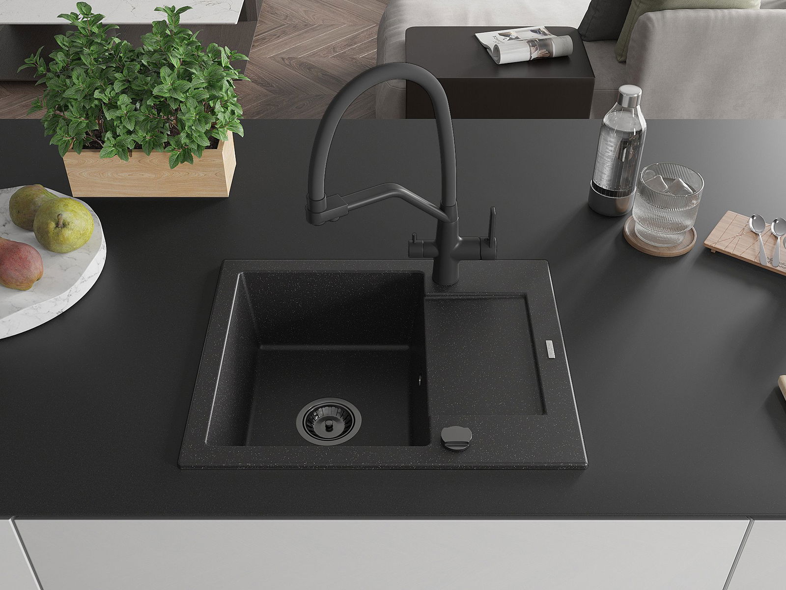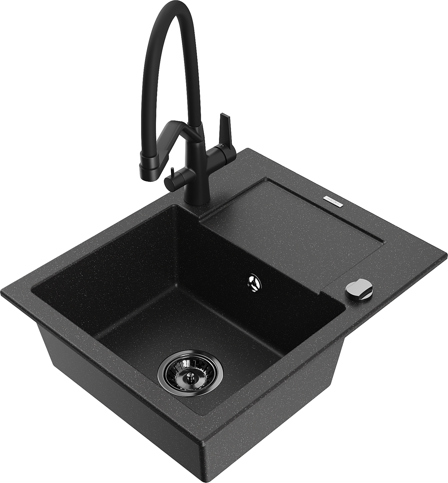 Mexen Enzo гранитна мивка с 1 отделение с отцедник и кухненски смесител Duo,