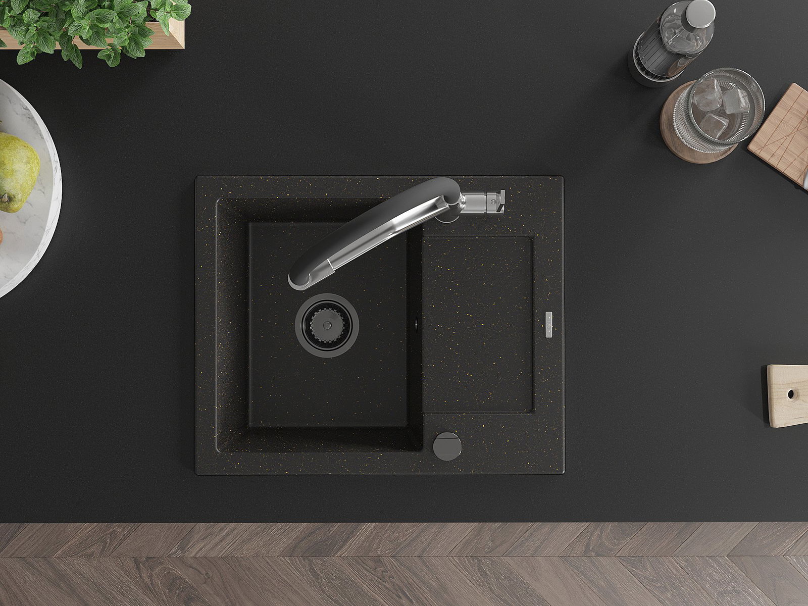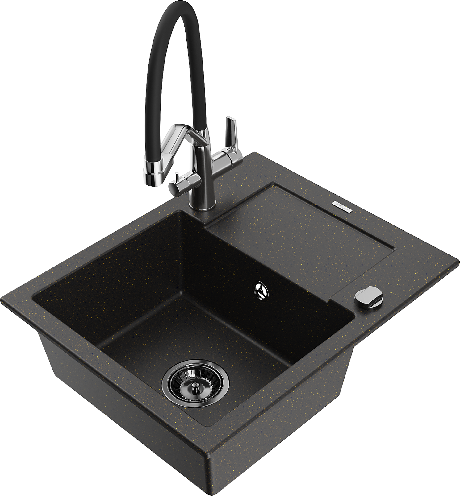 Mexen Enzo гранитна мивка с 1 камера с отцедник и кухненски смесител Duo,