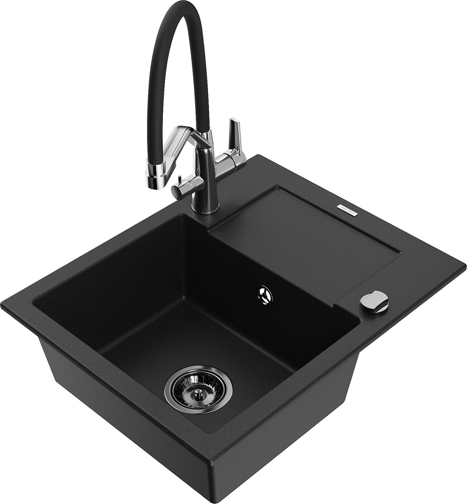 Mexen Enzo гранитна кухненска мивка с 1 корито със сушилник и кухненски смесител Duo, черен - 6506-77-671701-07-B