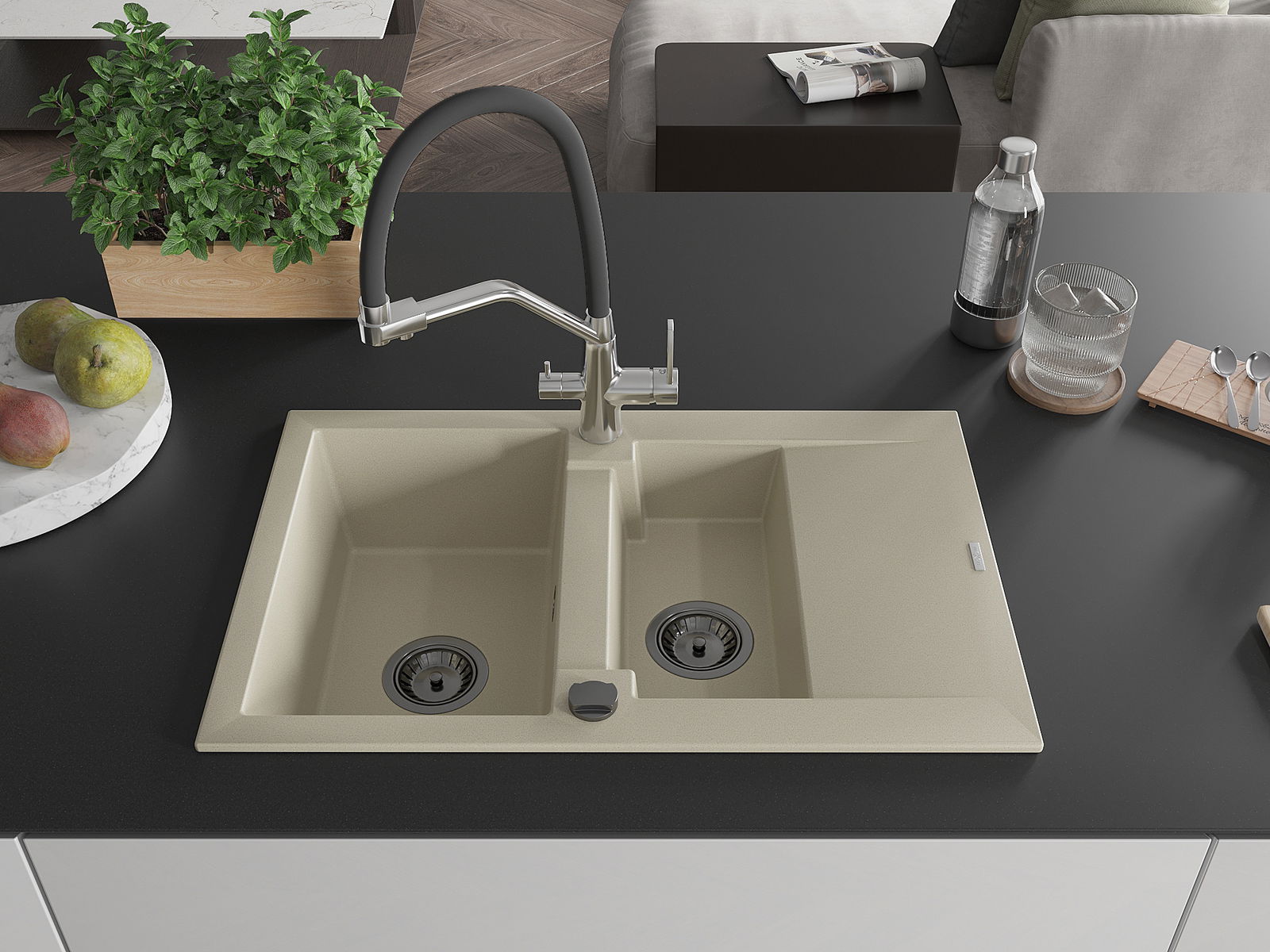 Повърхността на мивката е устойчива на петна и обезцветяване, благодарение на които е лесно да се почиства и запазва цвета си за дълго време. Естетически и практически допълващи всяка кухня.