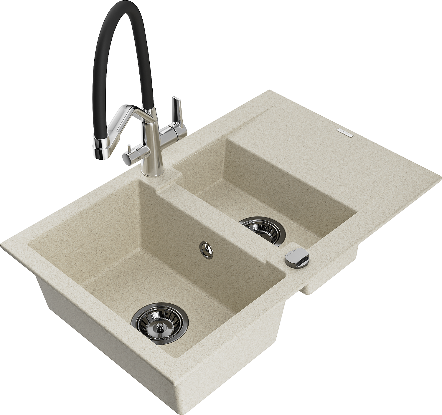 Mexen Gaspar гранитна мивка 1,5-коморен с отцедник и кухненски смесител Duo, бежов - 6507-69-671701-07-B