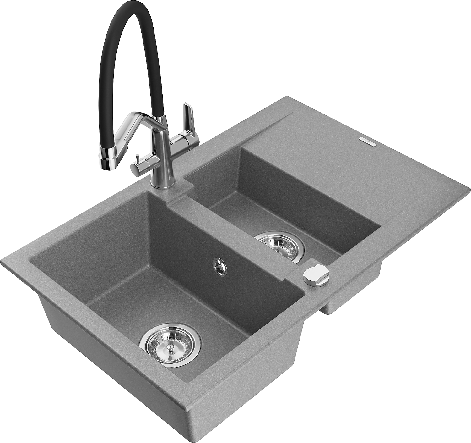 Мивка от гранит 1,5-камерна с отцедник и кухненски смесител Дуо, сива - 6507-71-671701-07