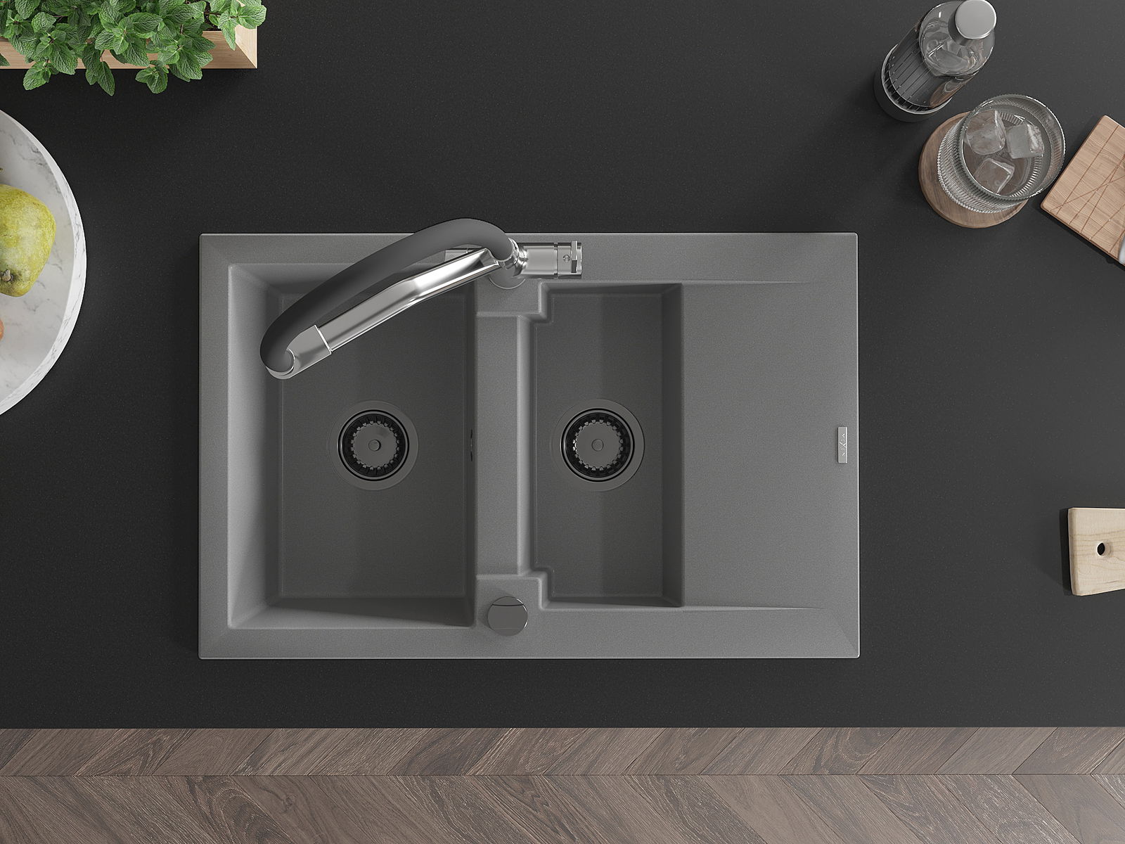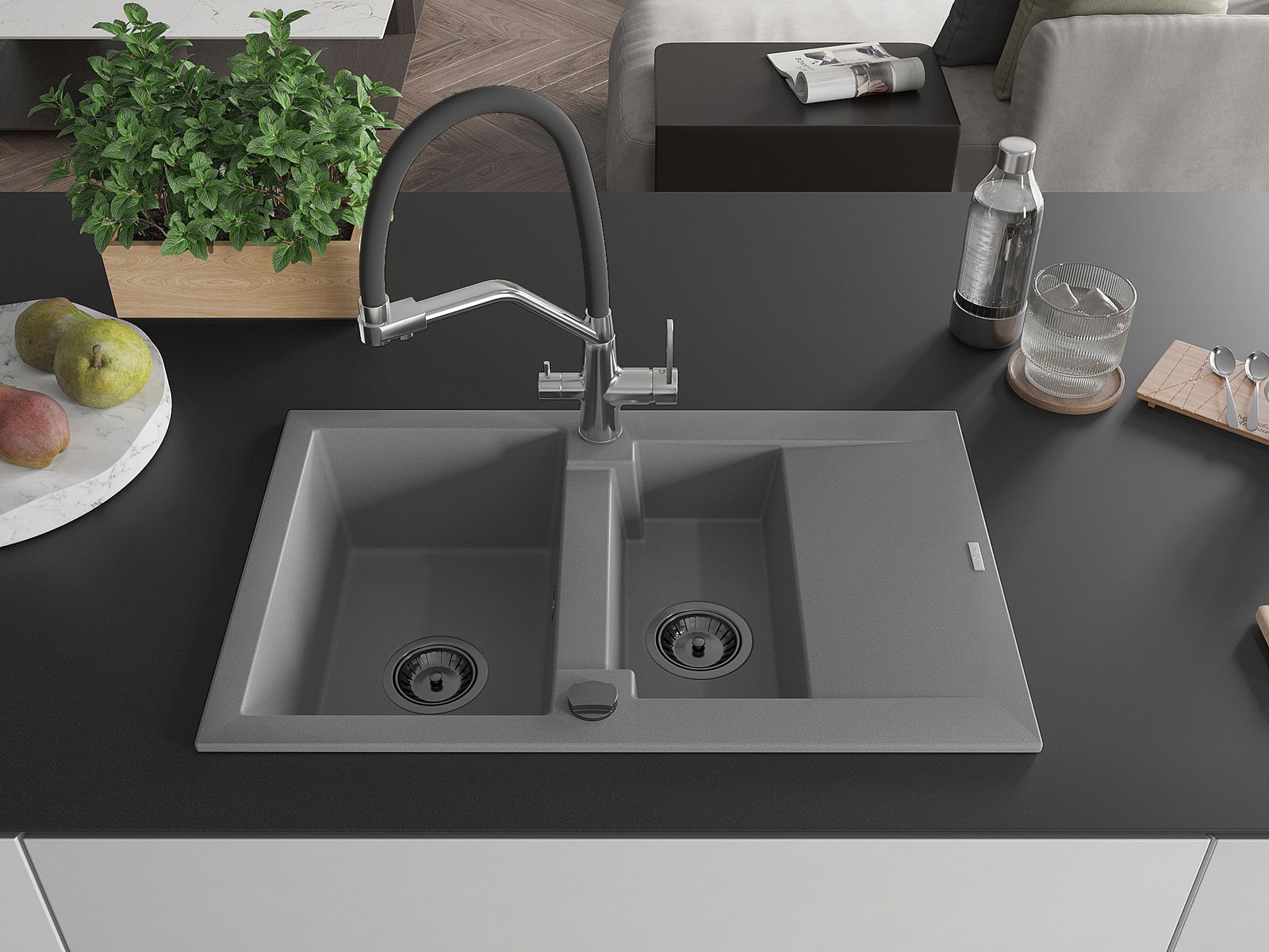Мивката е направена от висококачествен гранит. Това е елегантно и най -вече практично допълнение към всяка кухня, независимо от нейния стил. Висококачествената и гранитна издръжливост осигуряват много години употреба.