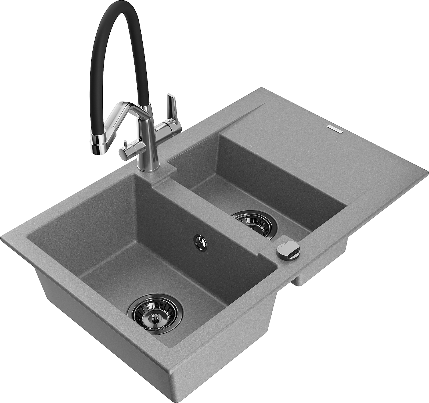 Mexen Gaspar гранитна мивка с 1,5 отделения с отцедник и кухненски смесител Duo, сив - 6507-71-671701-07-B