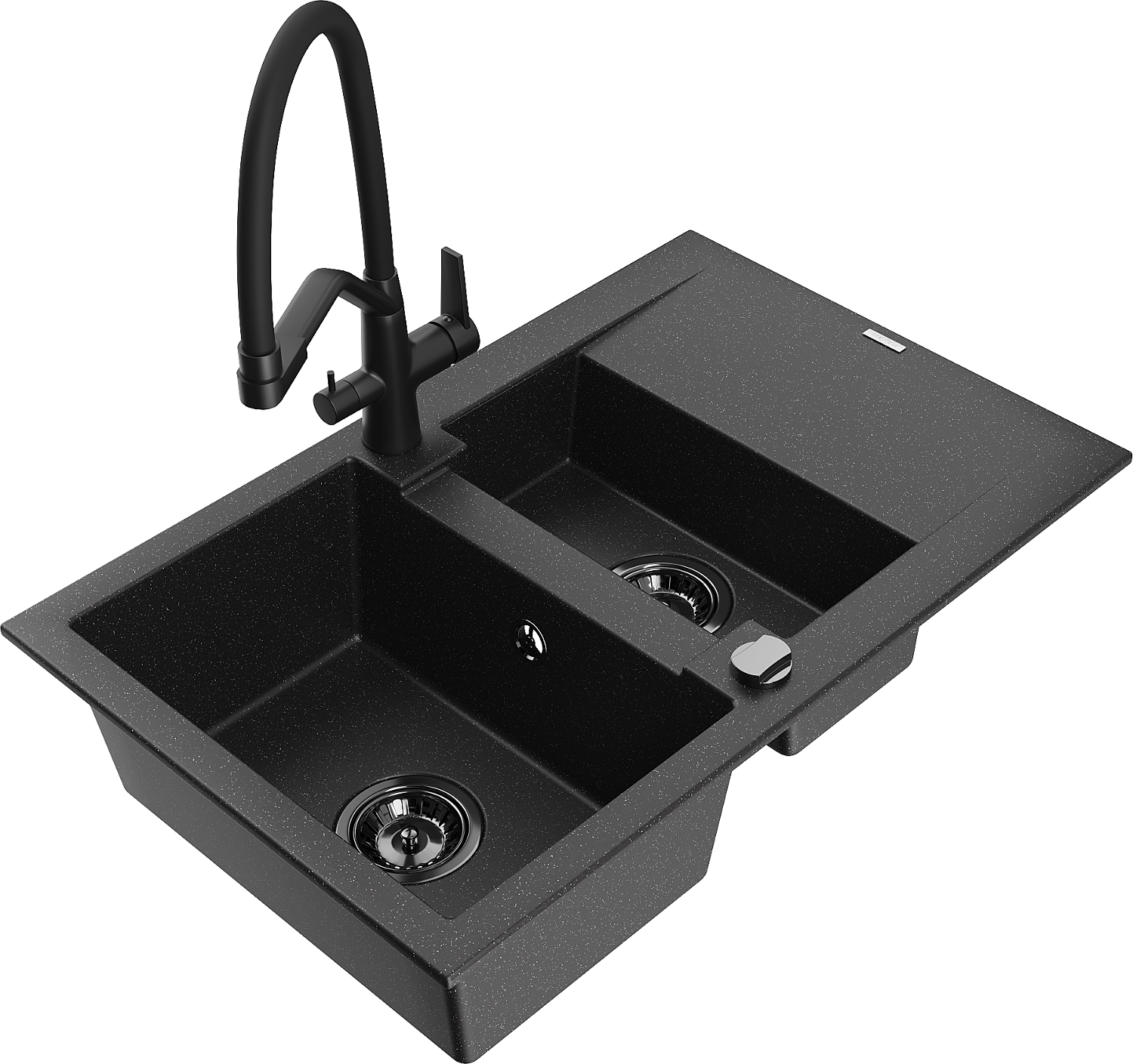 Mexen Gaspar гранитна мивка 1,5-камерна с отцедник и кухненски смесител Duo, черен/сребрист - 6507-73-671701-70-B