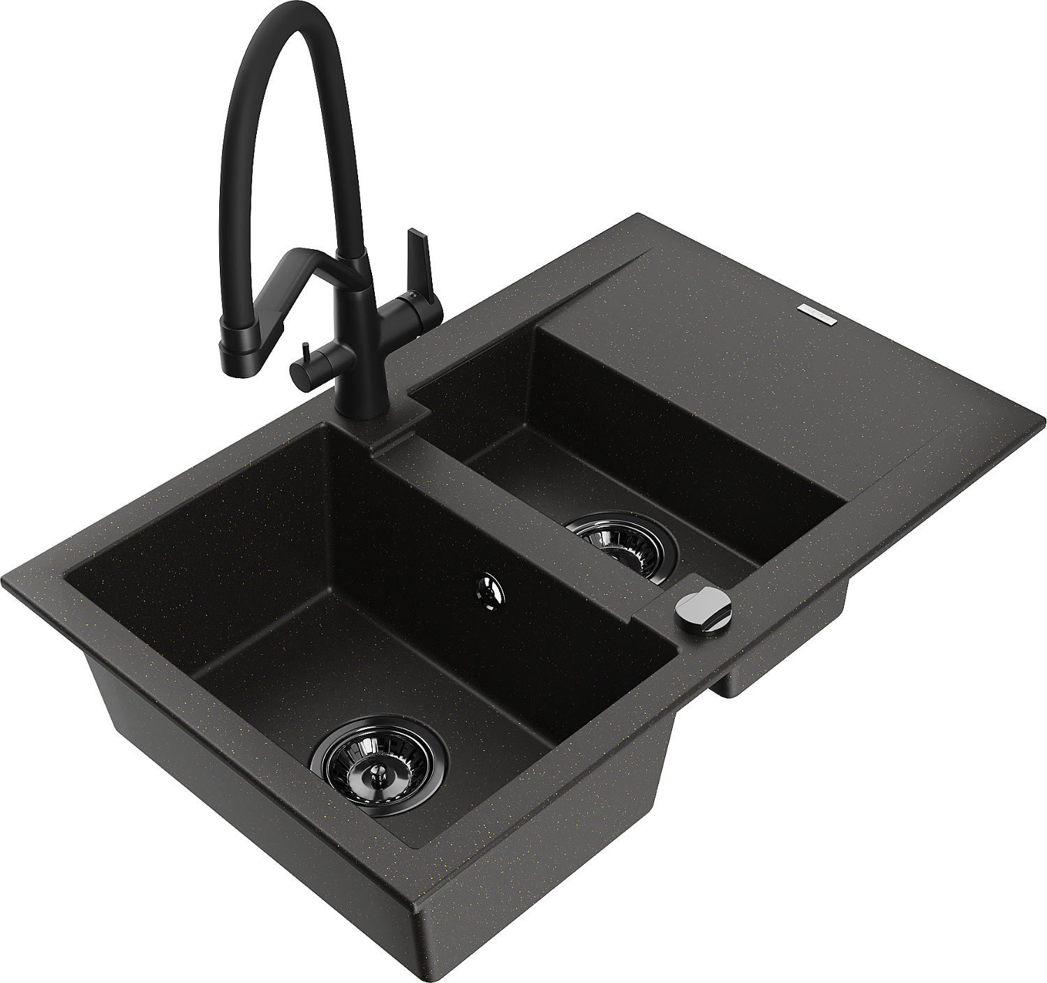 Мексен Гаспар гранитна мивка 1,5 камери с отцедник и кухненски смесител Duo, черен/златен металик - 6507-75-671701-70-B