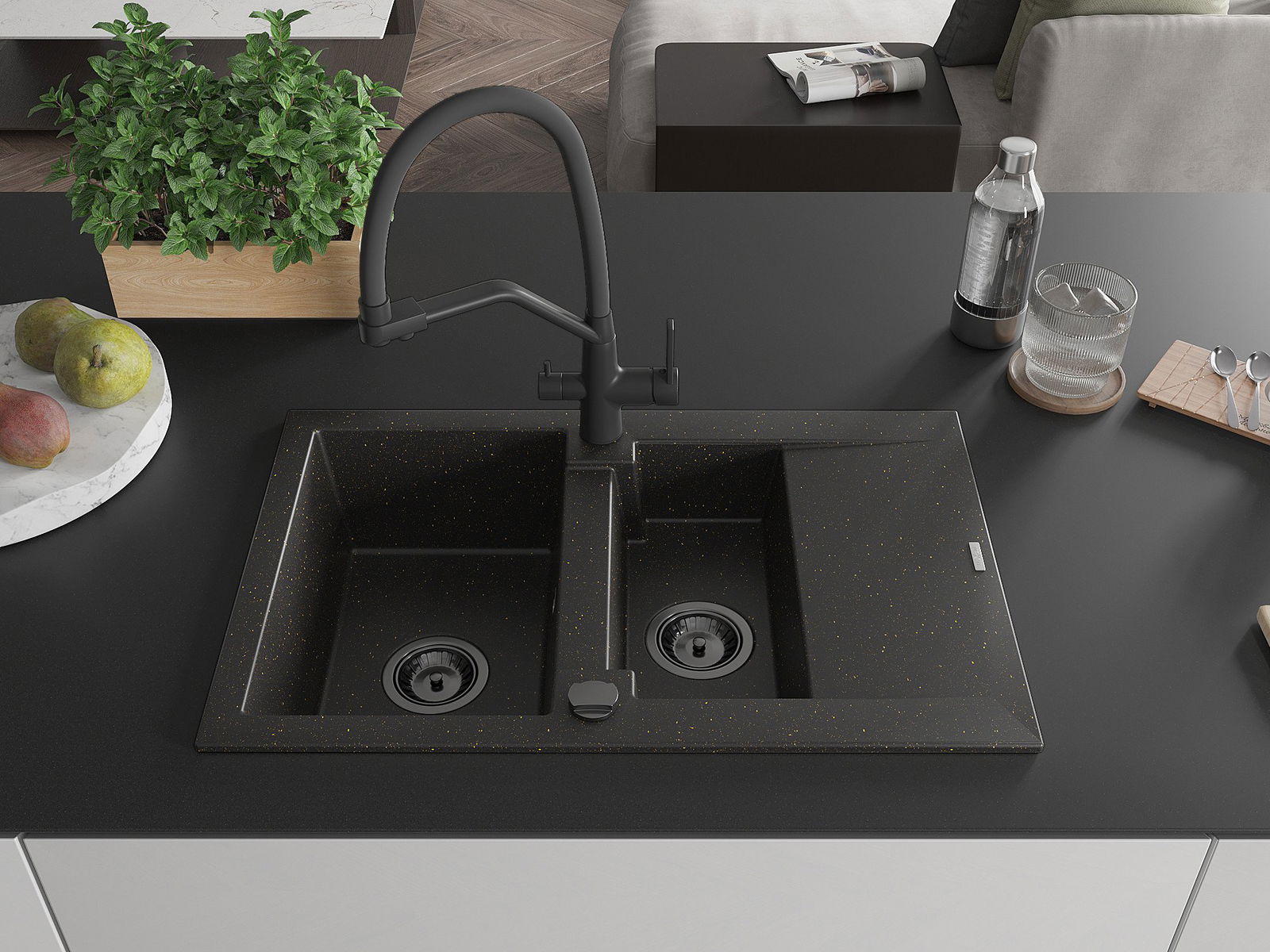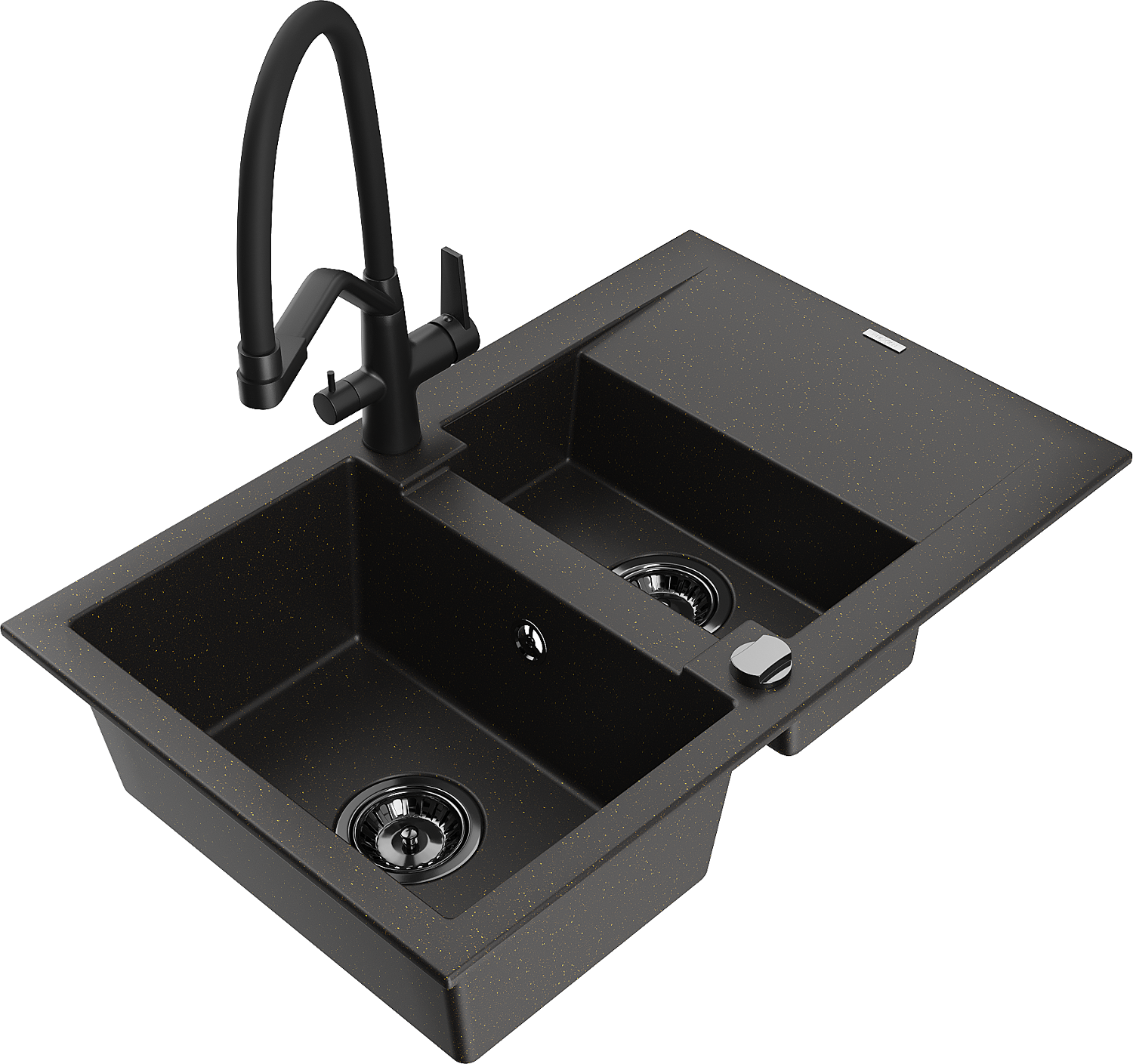 Mexen Gaspar гранитна мивка с 1,5 камери с отцедник и кухненски смесител Duo,