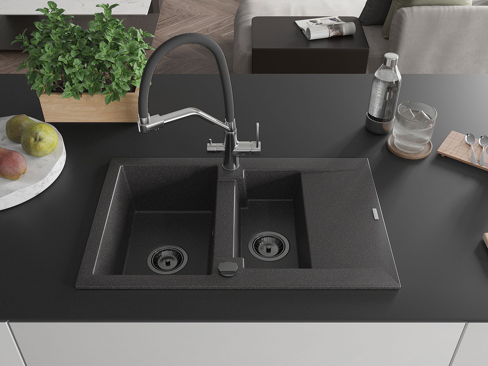 Мивката е направена от висококачествен гранит. Това е елегантно и най -вече практично допълнение към всяка кухня, независимо от нейния стил. Висококачествената и гранитна издръжливост осигуряват много години употреба.