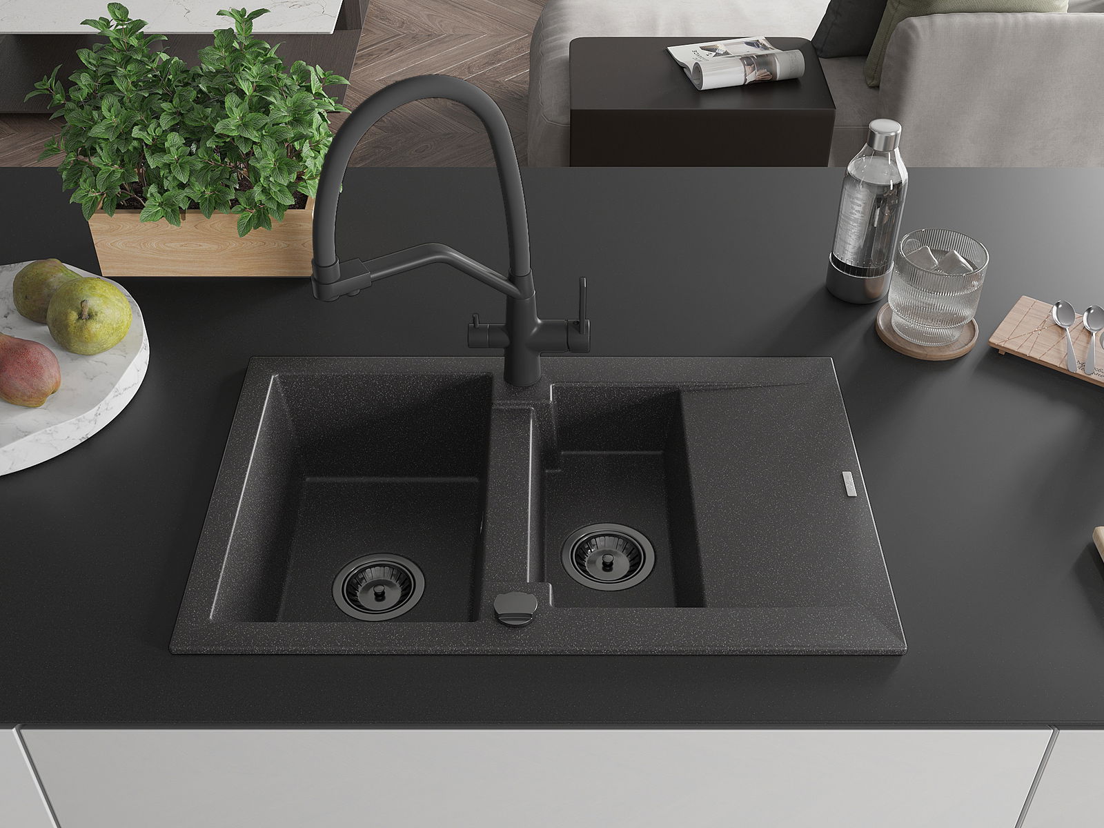 Мивката е направена от висококачествен гранит. Това е елегантно и най -вече практично допълнение към всяка кухня, независимо от нейния стил. Висококачествената и гранитна издръжливост осигуряват много години употреба.