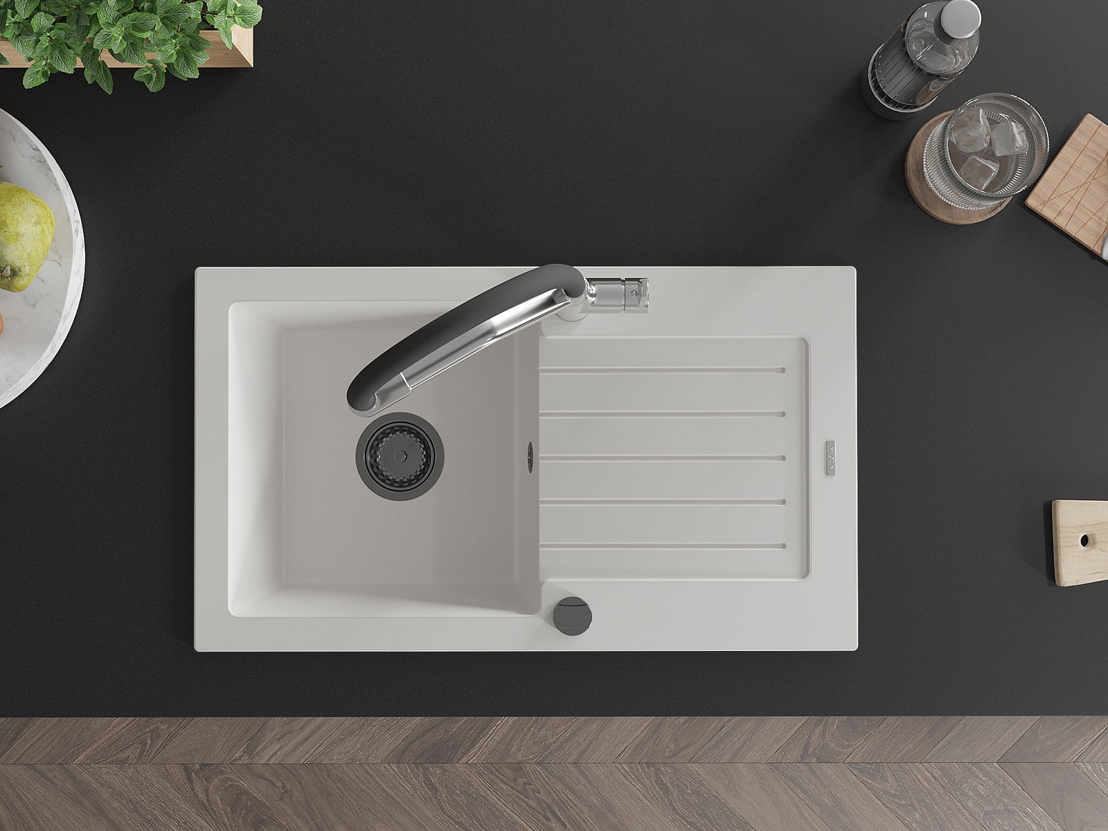 Мивката е направена от висококачествен гранит. Това е елегантно и най -вече практично допълнение към всяка кухня, независимо от нейния стил. Висококачествената и гранитна издръжливост осигуряват много години употреба.