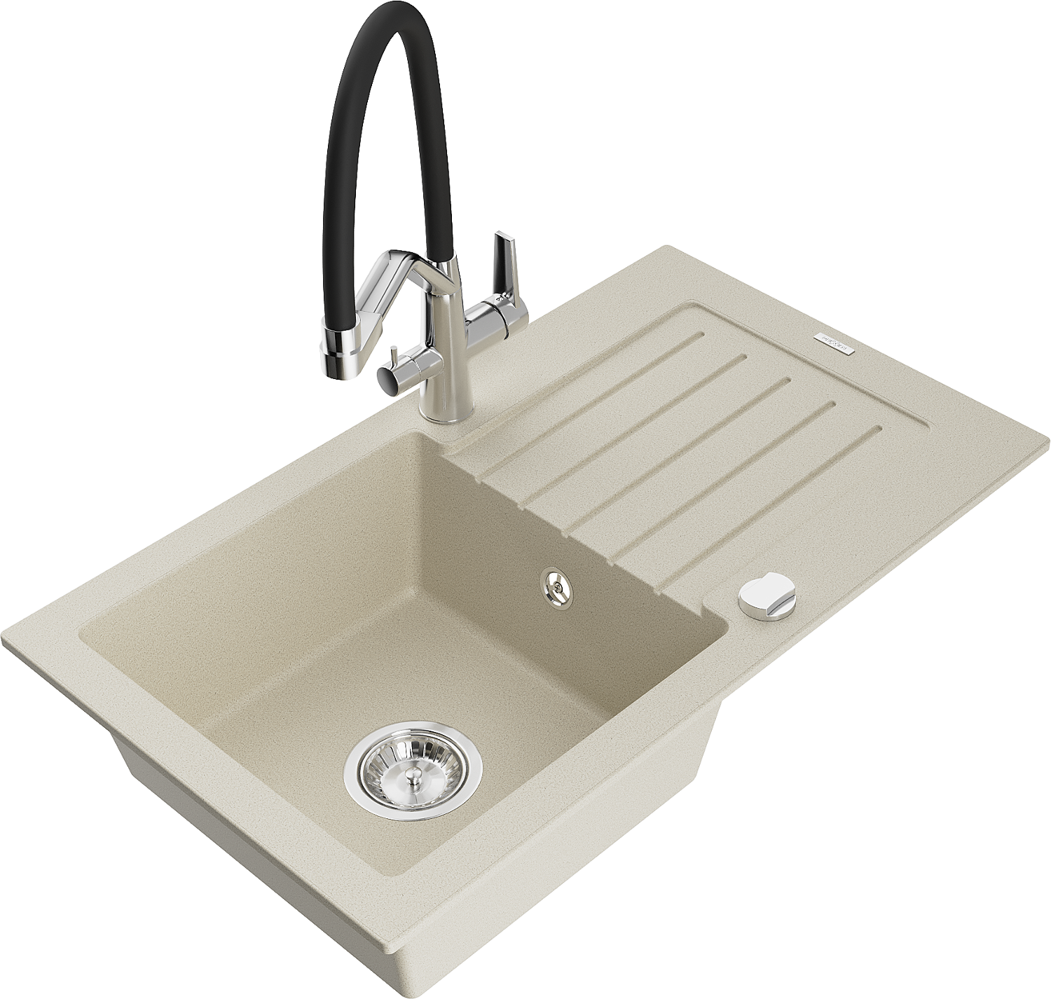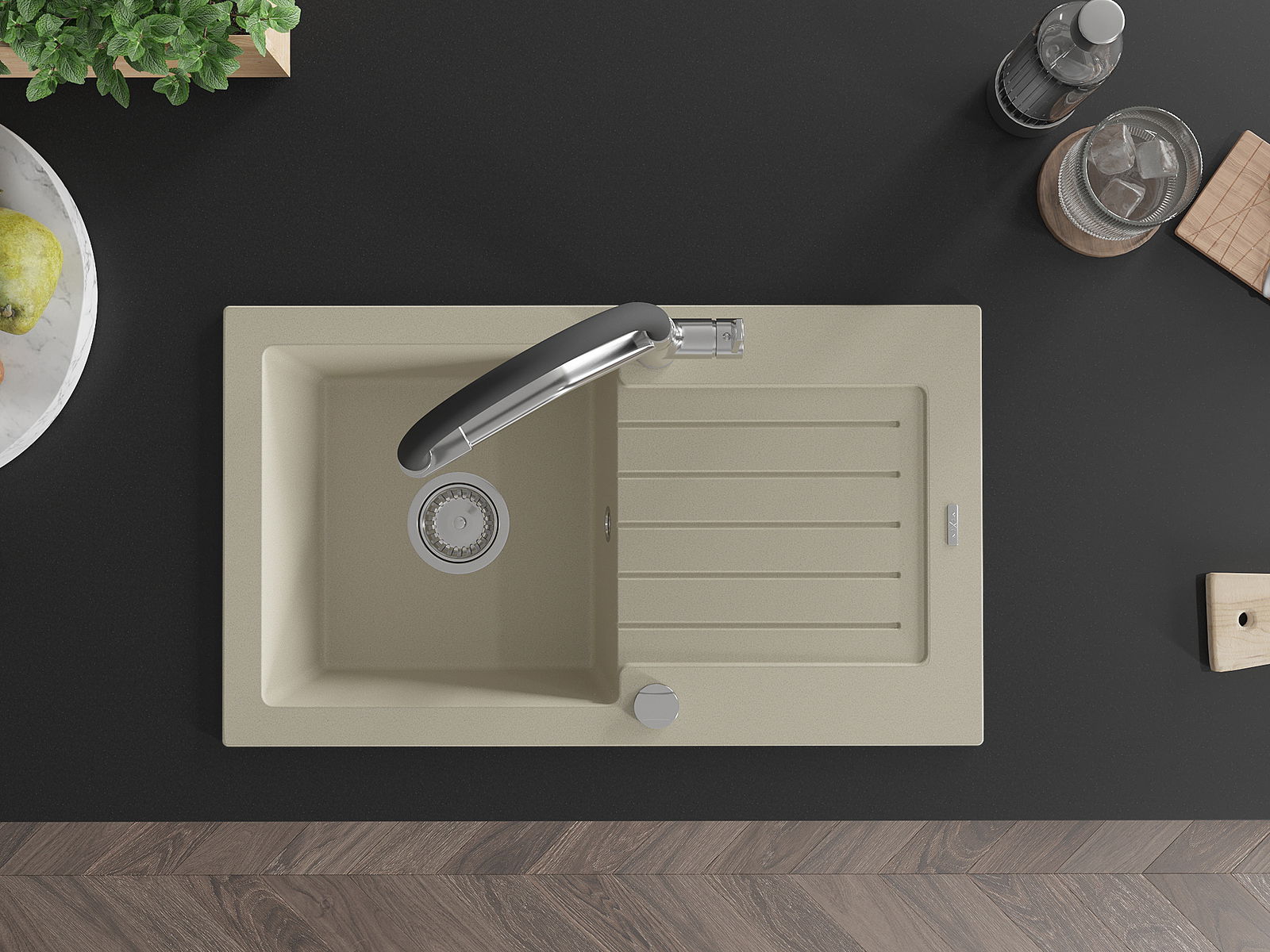 Mexen Pablo гранитна мивка с 1 отделение, отцедник и кухненски смесител Duo, бежов - 6510-69-671701-07