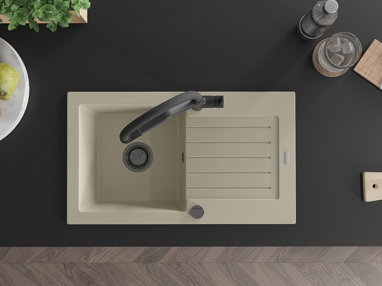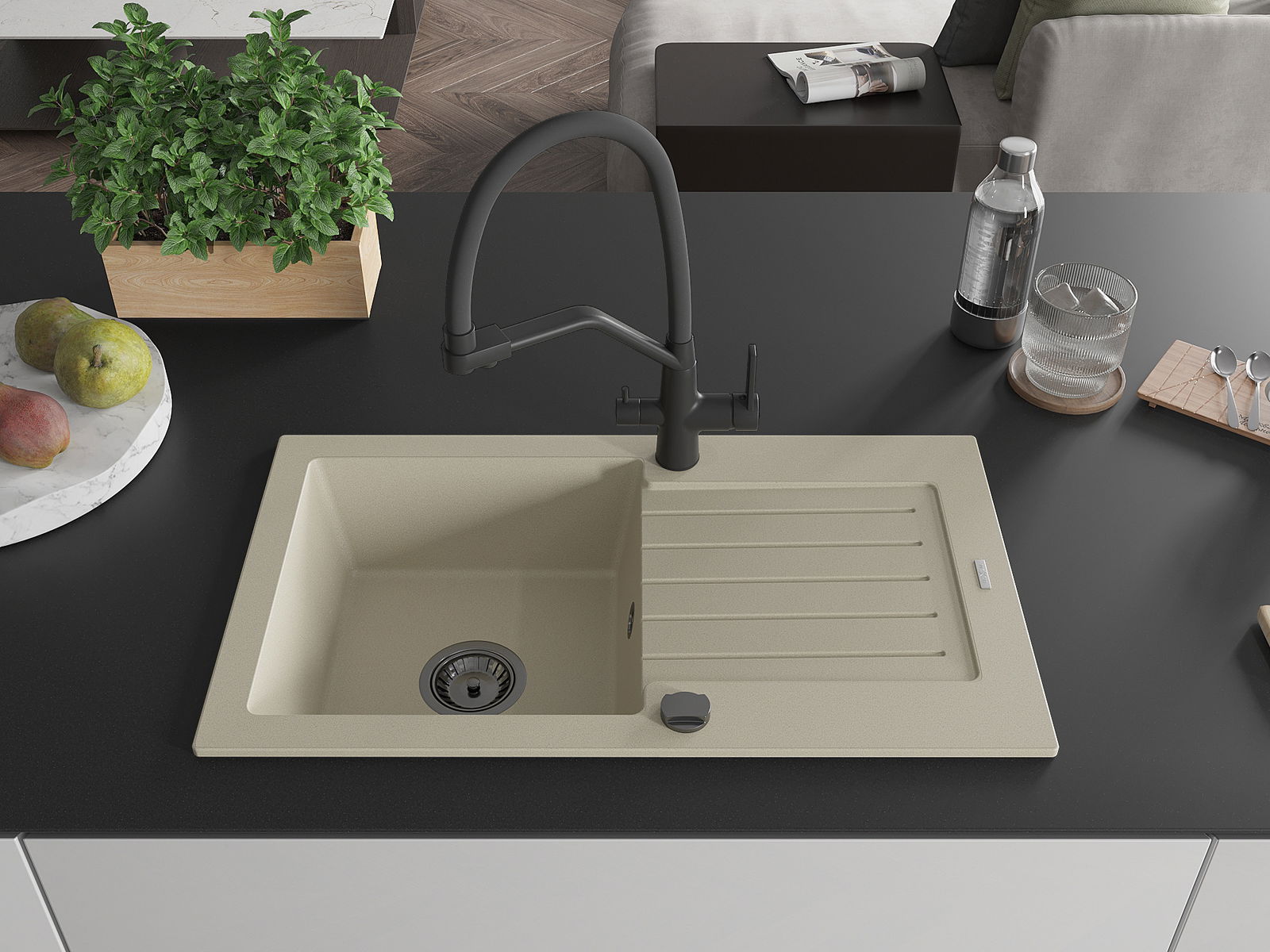 Мивката е направена от висококачествен гранит. Това е елегантно и най -вече практично допълнение към всяка кухня, независимо от нейния стил. Висококачествената и гранитна издръжливост осигуряват много години употреба.