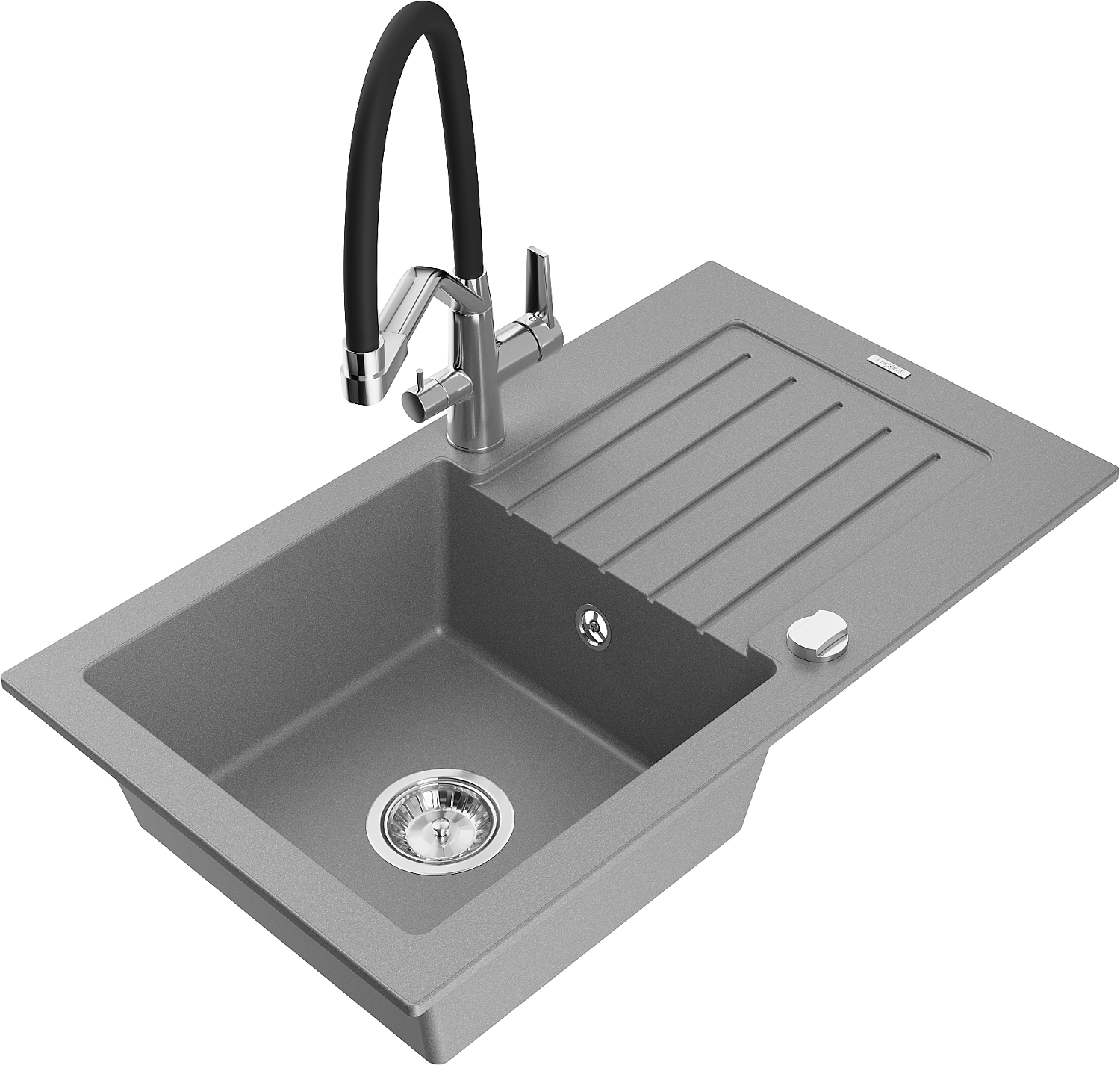 Mexen Pablo гранитна мивка с една камера и отцедник и кухненска батерия Duo, сива - 6510-71-671701-07