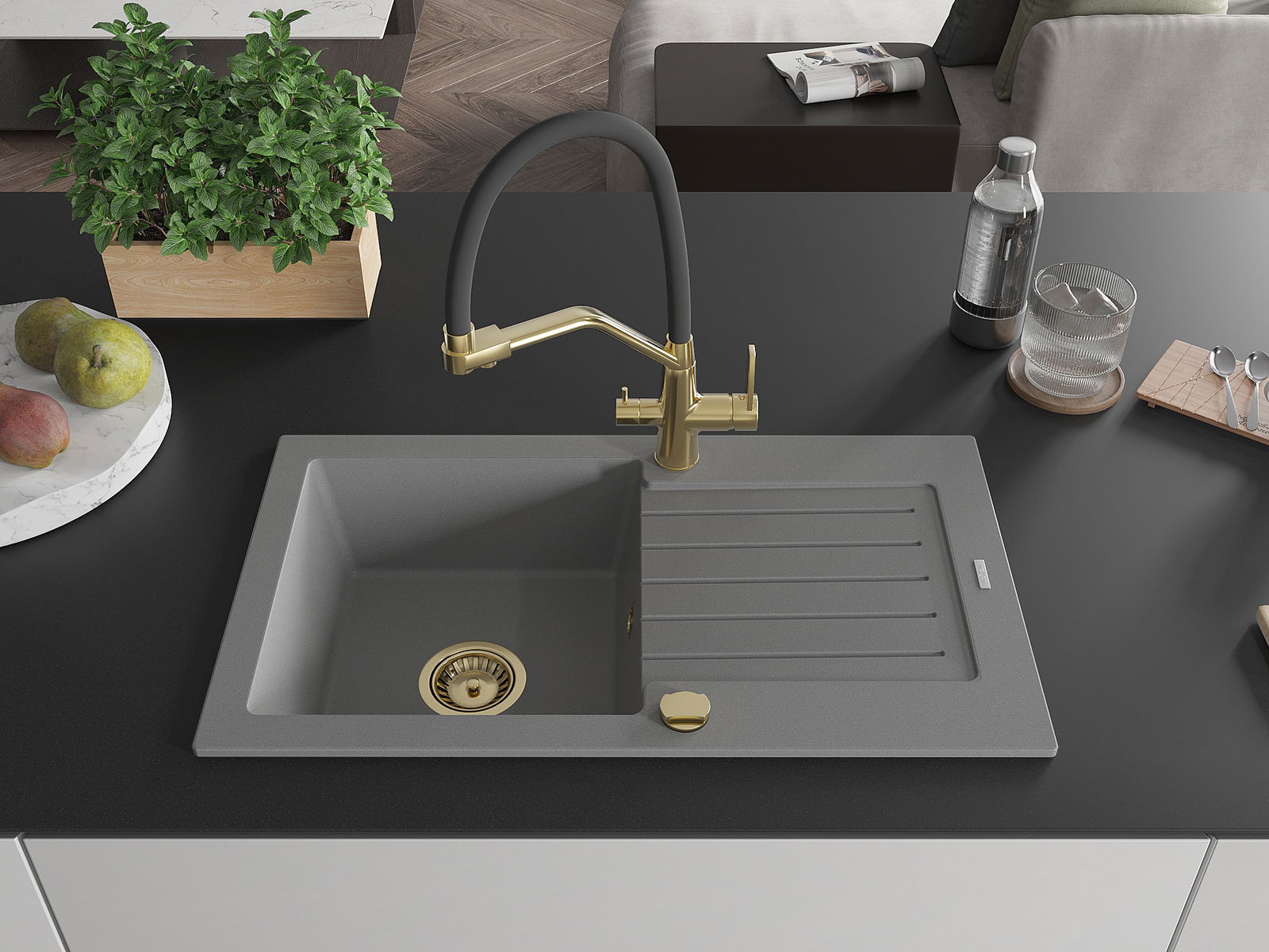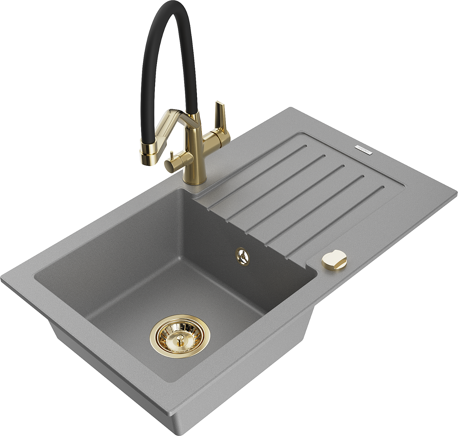 Mexen Pablo гранитна мивка с 1 купа със сушилня и кухненски смесител Duo, сив