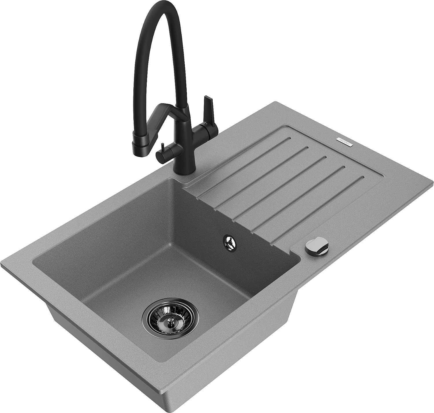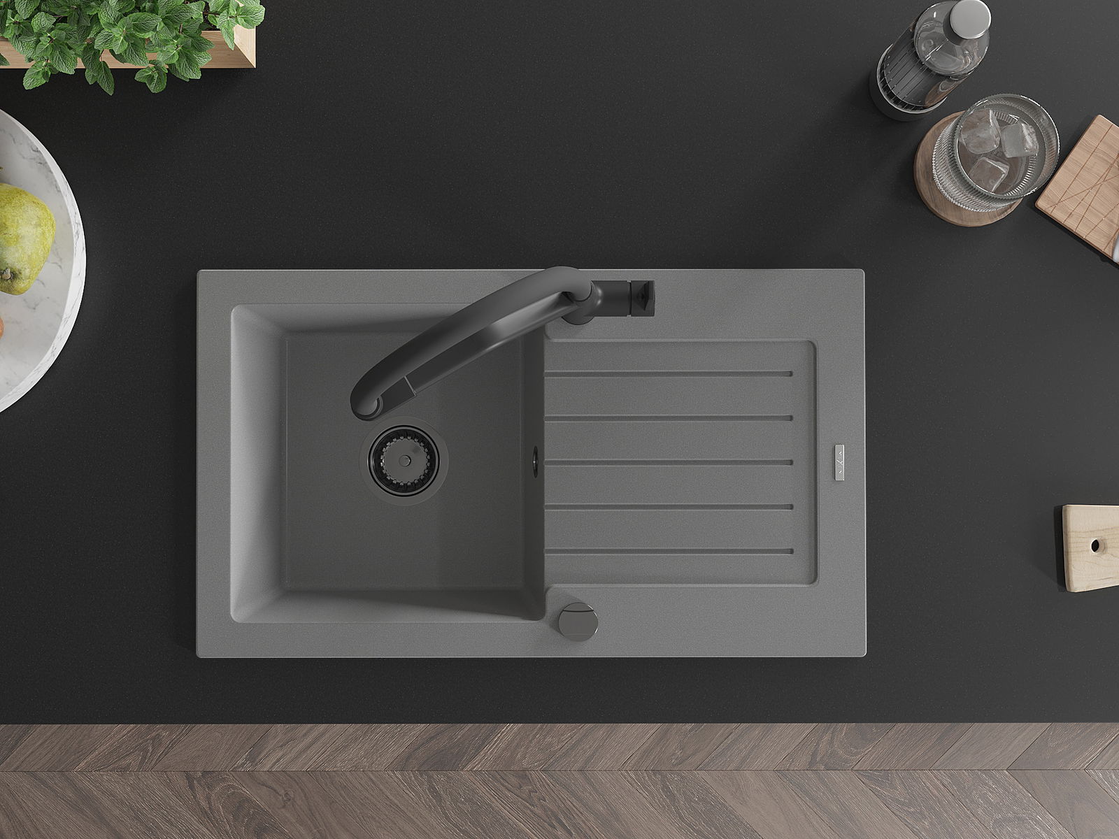 Mexen Pablo гранитна мивка с 1 камера и отцедник и кухненски смесител Duo, сив - 6510-71-671701-70-B