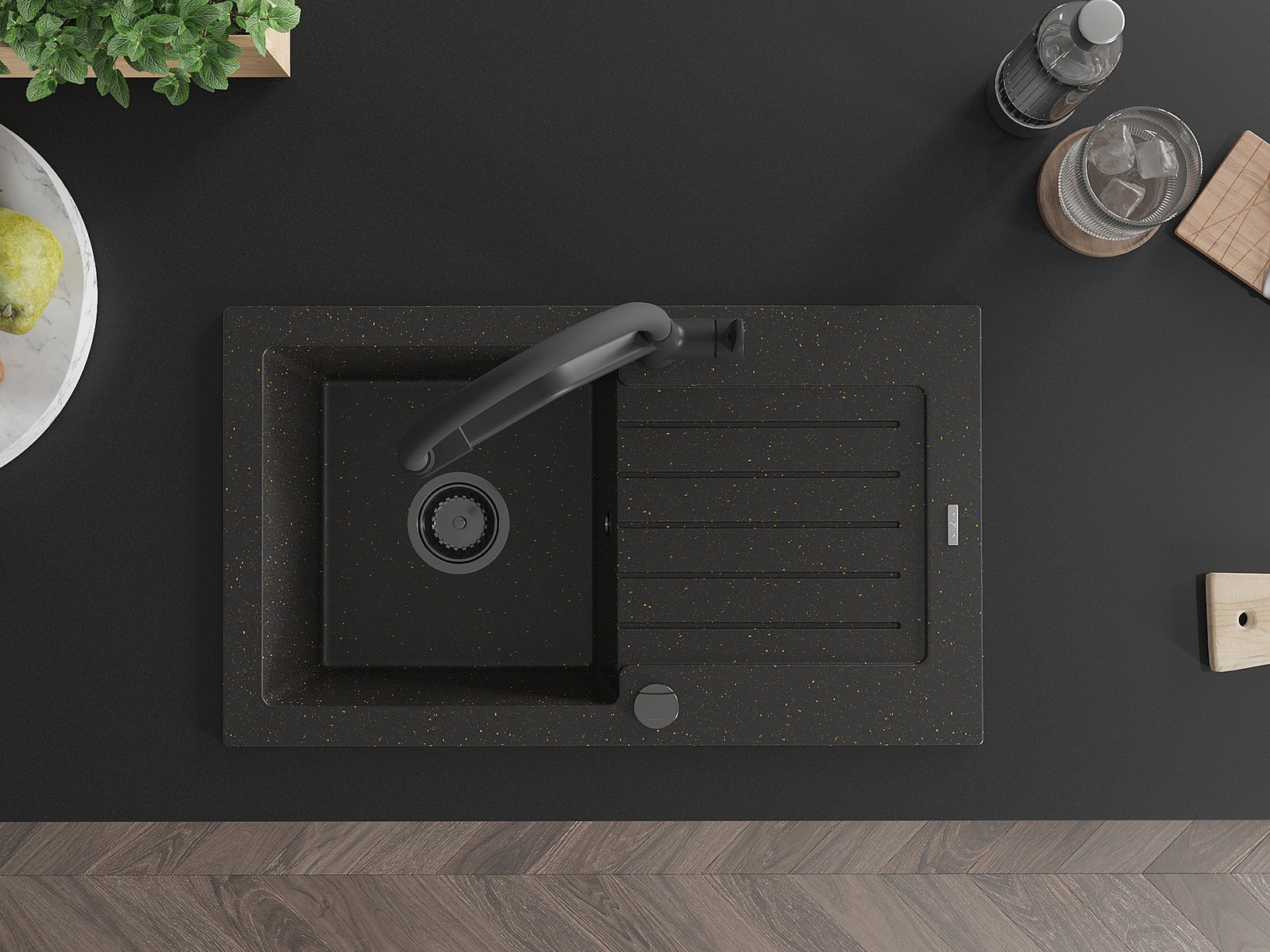 Мивката е направена от висококачествен гранит. Това е елегантно и най -вече практично допълнение към всяка кухня, независимо от нейния стил. Висококачествената и гранитна издръжливост осигуряват много години употреба.