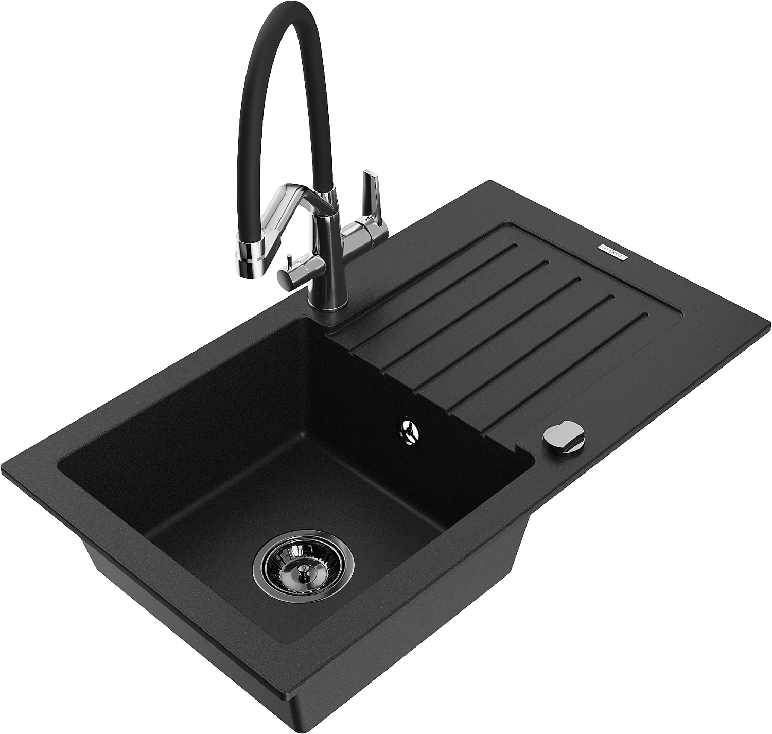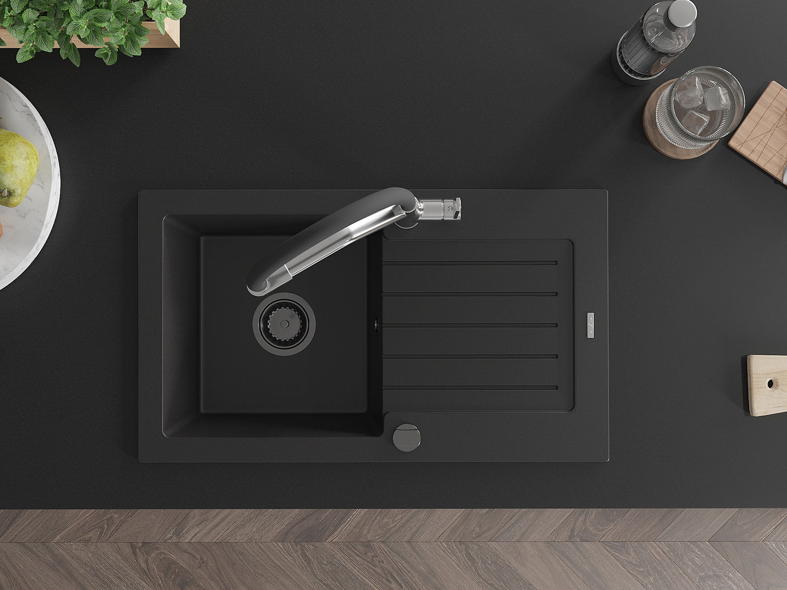 Мивка от гранит с една камера с отцедник и кухненски смесител Duo, черен - 6510-77-671701-07-B