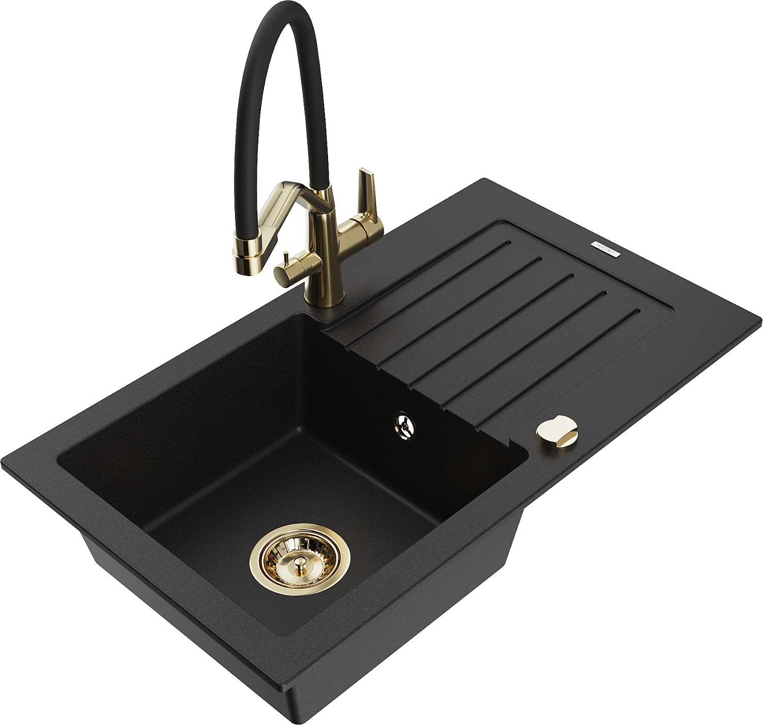 Mexen Pablo гранитна мивка с 1 отделение с отцедник и кухненски смесител Duo, черен - 6510-77-671701-57-G